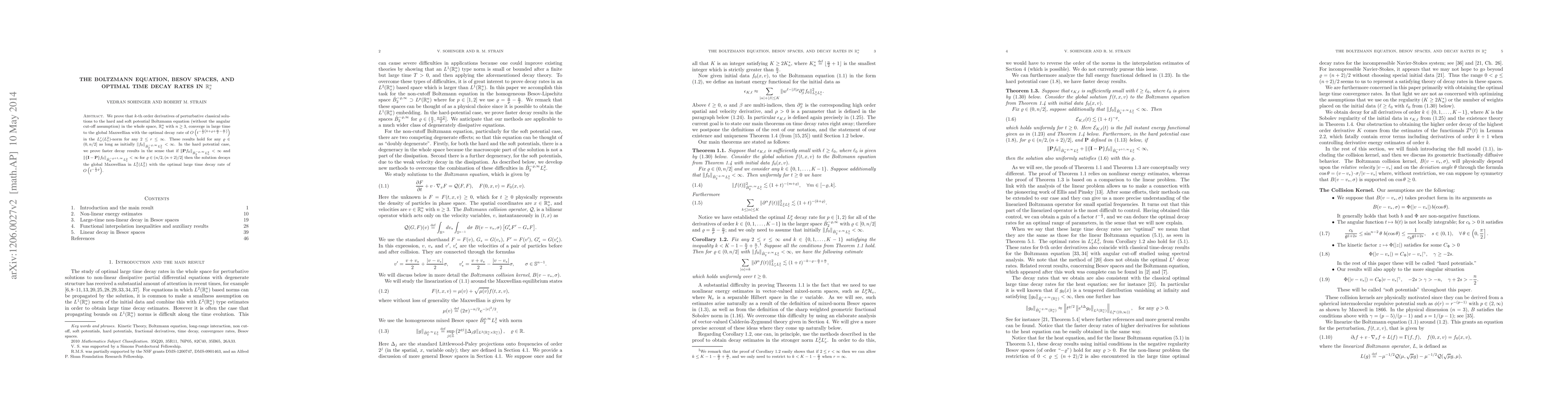 We prove that $k$-th order derivatives of perturbative classical solutions to the hard and soft potential Boltzmann equation (without the angular cut-off assumption) in the whole space, ${\mathbb R}^{n}_x$ with $n \ge 3$, converge in large-time to the global Maxwellian with the optimal decay rate of $O(t^{-1/2(k+\varrho+\frac{n}{2}-\frac{n}{r})})$ in the $L^r_x(L^2_{v})$-norm for any $2\leq r\leq \infty$. These results hold for any $\varrho \in [0, n/2]$ as long as initially $\| f_0|_{\dot{B}^{-\varrho,\infty}_2 L^2_{v}} < \infty$. In the hard potential case, we prove faster decay results in the sense that if $|\mathbf{P} f_0\|_{\dot{B}^{-\varrho,\infty}_2 L^2_{v}} < \infty$ and $|({\mathbf{I} - \mathbf{P}}) f_0|_{\dot{B}^{-\varrho+1,\infty}_2 L^2_{v}} < \infty$ for $\varrho \in (n/2, (n+2)/2]$ then the solution decays to zero in $L^2_v(L^2_x)$ with the optimal large time decay rate of $O(t^{-1/2\varrho})$.