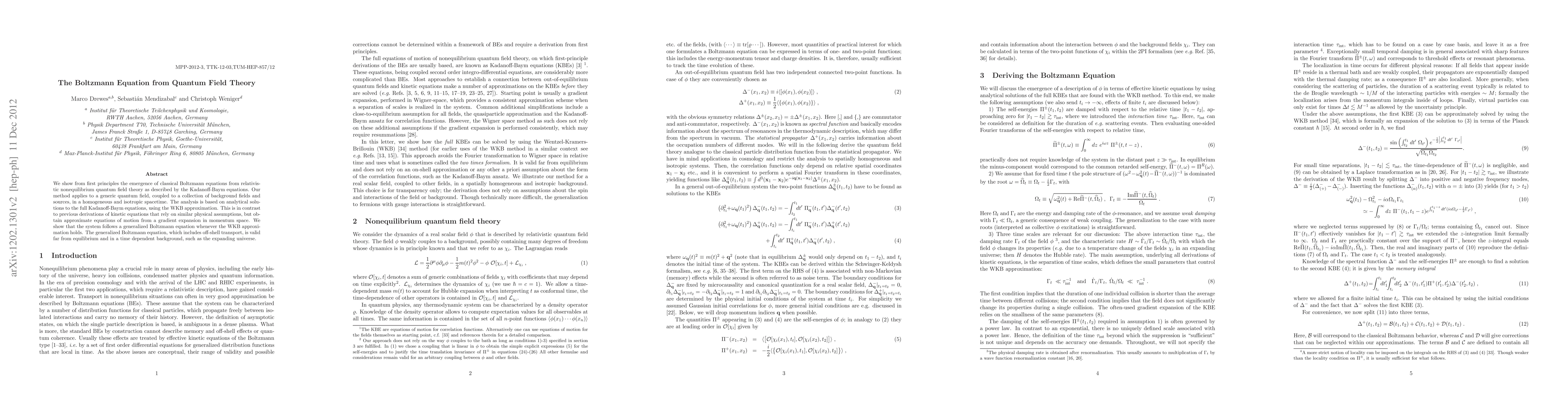 This paper derives classical Boltzmann equations from relativistic quantum field theory using the Kadanoff-Baym equations and the WKB approximation, showing their validity far from equilibrium and in time-dependent backgrounds. Unlike previous methods, it provides exact solutions rather than gradient expansions.
