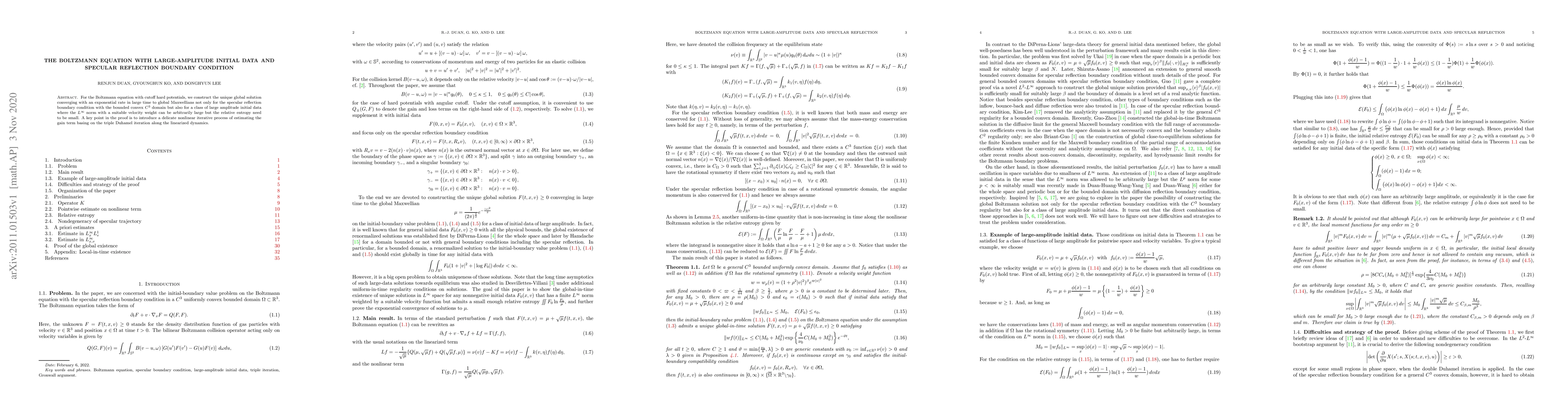 This paper constructs a unique global solution for the Boltzmann equation with large-amplitude initial data and specular reflection boundary conditions, showing convergence to global Maxwellians. The proof employs a nonlinear iterative process based on triple Duhamel iteration to manage the gain term.