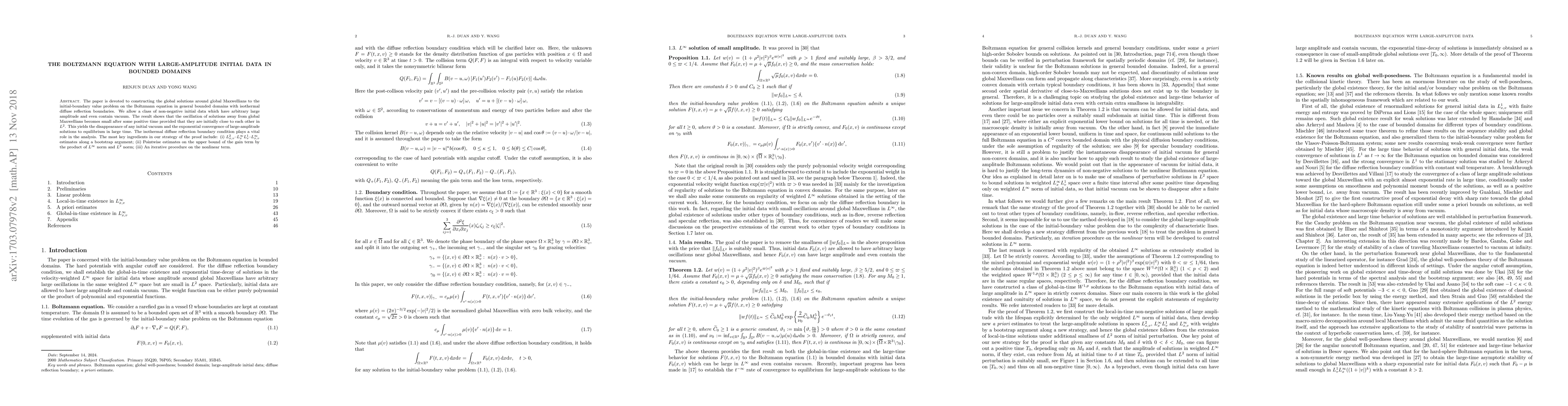 This paper constructs global solutions for the Boltzmann equation in bounded domains with large-amplitude initial data, including vacuum, and demonstrates their convergence to equilibrium. The isothermal diffuse reflection boundary condition is crucial, and the proof strategy involves $L^2$-$L^\infty$ estimates, pointwise upper bounds, and an iterative procedure for the nonlinear term.