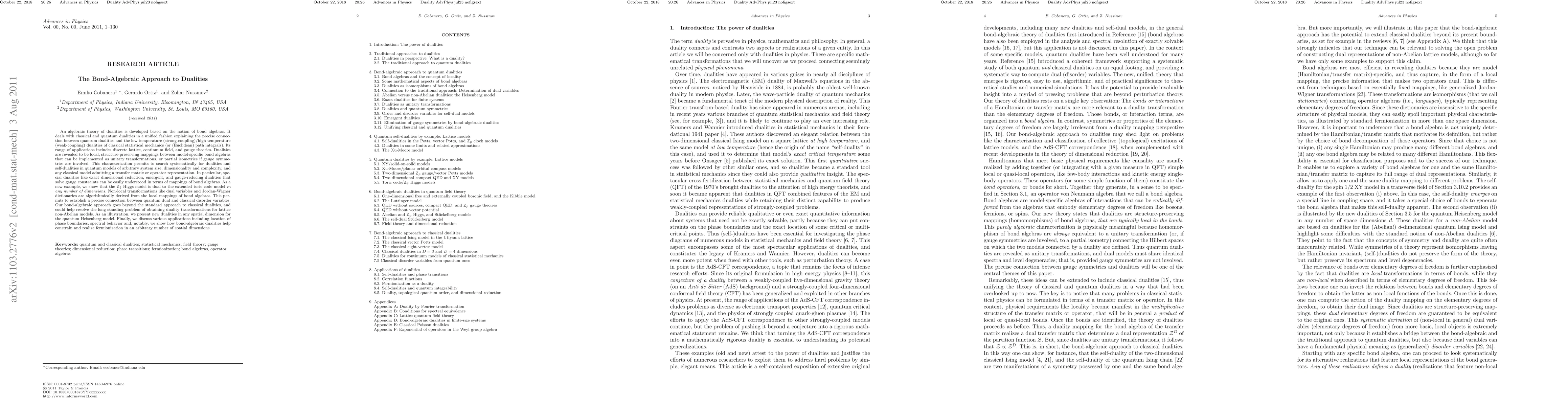 This paper develops an algebraic theory of dualities using bond algebras, unifying classical and quantum dualities and revealing them as local, structure-preserving mappings. It extends the standard approach, providing new dualities for non-Abelian models and aiding in fermionization across dimensions.