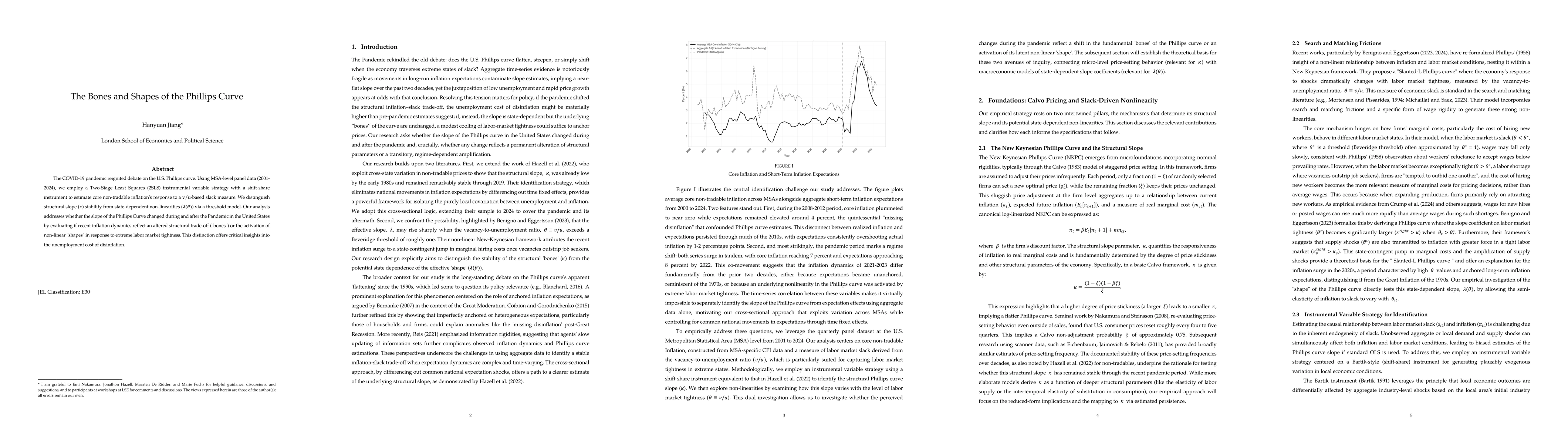 The COVID-19 pandemic reignited debate on the U.S. Phillips curve. Using MSA-level panel data (2001-2024), we employ a Two-Stage Least Squares (2SLS) instrumental variable strategy with a shift-share instrument to estimate core non-tradable inflation's response to a v/u-based slack measure. We distinguish structural slope stability from state-dependent non-linearities via a threshold model. Our analysis addresses whether the slope of the Phillips Curve changed during and after the Pandemic in the United States by evaluating if recent inflation dynamics reflect an altered structural trade-off ("bones") or the activation of non-linear "shapes" in response to extreme labor market tightness. This distinction offers critical insights into the unemployment cost of disinflation.