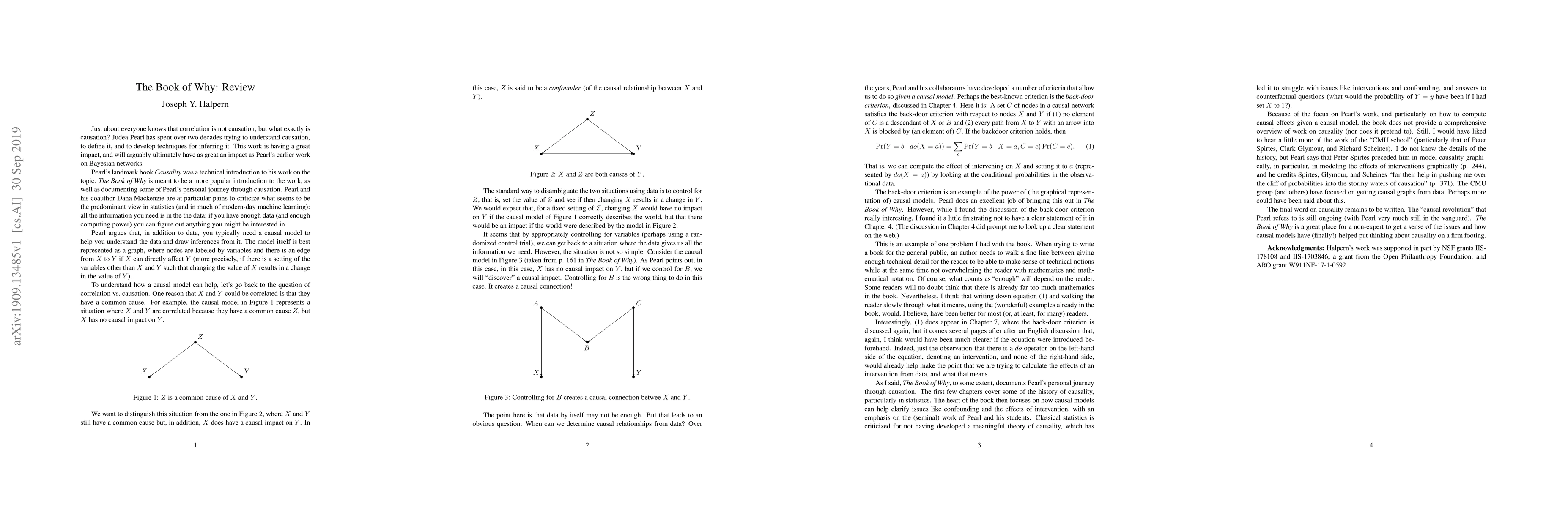 "The Book of Why" by Judea Pearl reviews the fundamental concepts of causality and how they differ from traditional correlation-based approaches in understanding cause-and-effect relationships in data analysis. The book emphasizes the importance of causal models in scientific inquiry and decision-making.