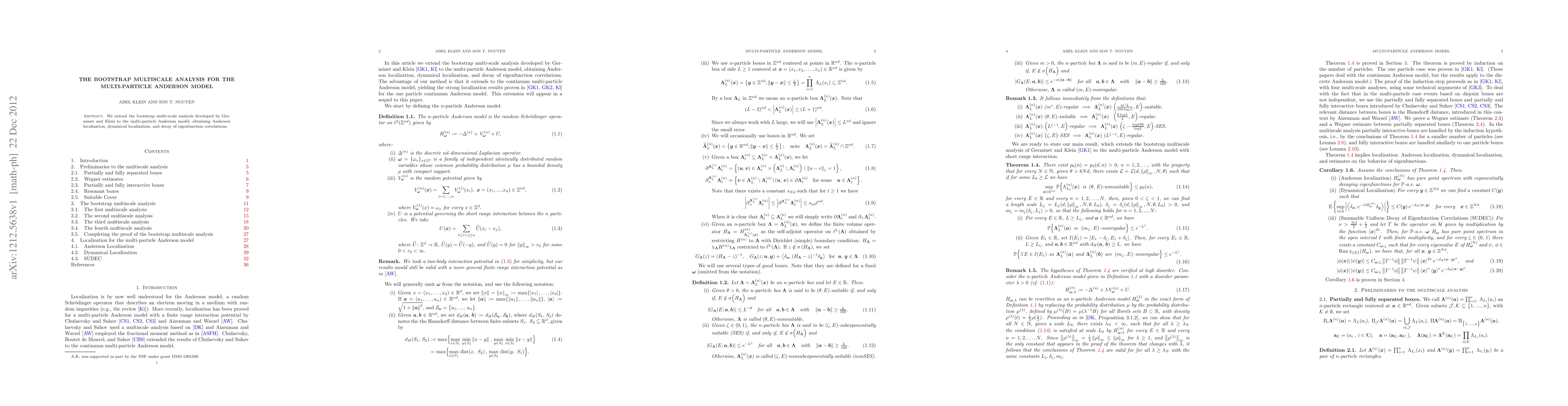 Summary: This paper extends the bootstrap multi-scale analysis to the multi-particle Anderson model, demonstrating Anderson localization, dynamical localization, and the decay of eigenfunction correlations.
