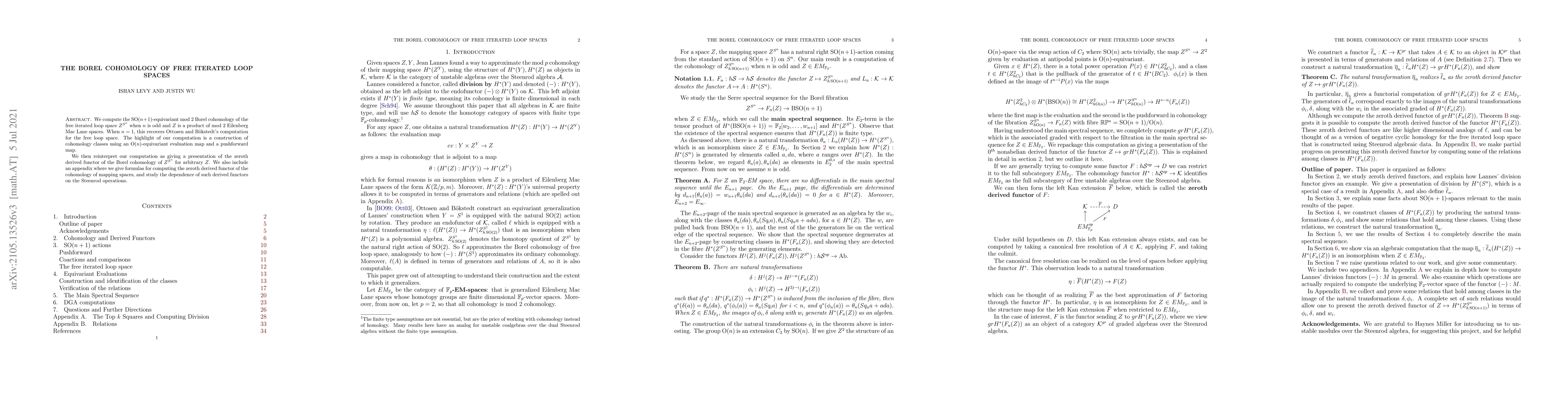 This paper computes $\text{SO}(n+1)$-equivariant mod 2 Borel cohomology for the free iterated loop space $Z^{S^n}$ when $n$ is odd. It constructs cohomology classes using an $\text{O}(n)$-equivariant evaluation map and a pushforward, and reinterprets the results to present the zeroth derived functor of Borel cohomology for arbitrary $Z$.