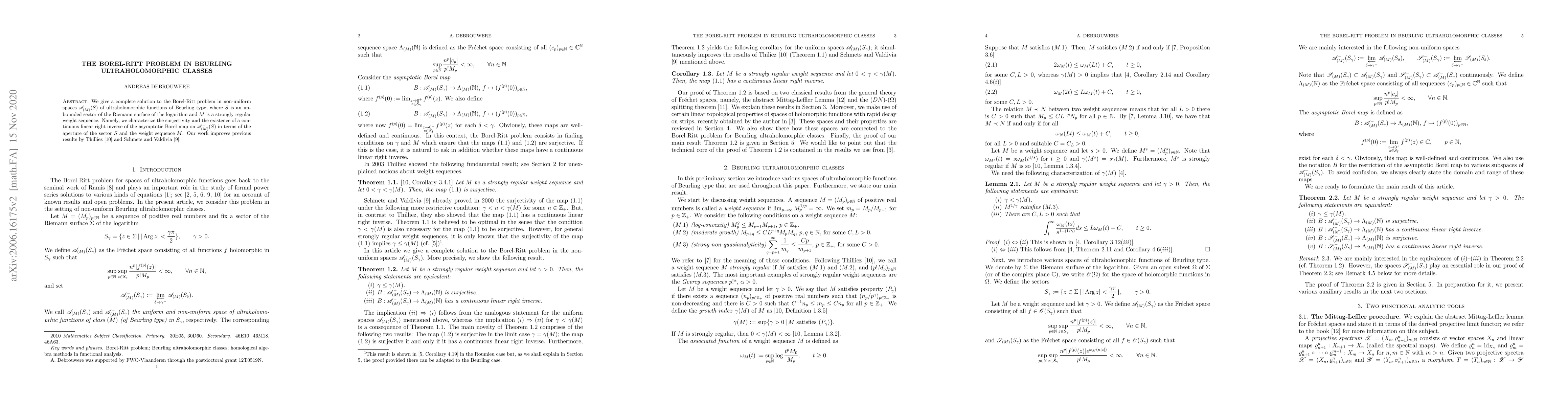 This paper provides a complete solution to the Borel-Ritt problem in the context of Beurling ultraholomorphic classes, characterizing the surjectivity and continuous linear right inverse of the asymptotic Borel map based on the sector's aperture and weight sequence. It enhances prior work by Thilliez and Schmets & Valdivia.