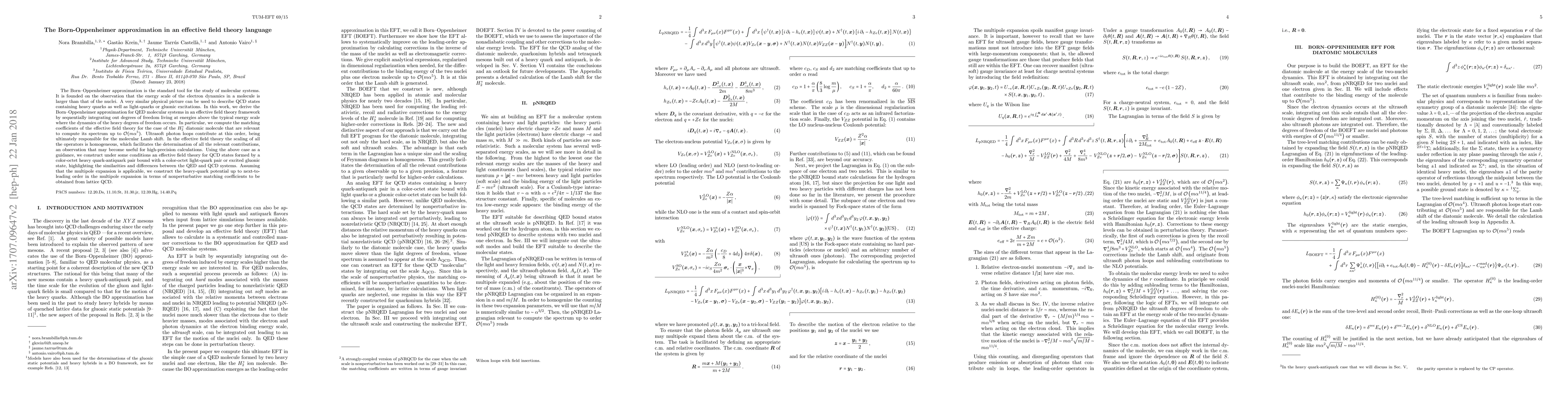 This paper derives the Born-Oppenheimer approximation for QED molecular systems within an effective field theory framework, focusing on the $H^+_2$ diatomic molecule and its spectrum. It also constructs an effective field theory for QCD states involving heavy quarks and light-quark pairs or gluonic excitations, comparing QED and QCD systems and highlighting their similarities and differences.