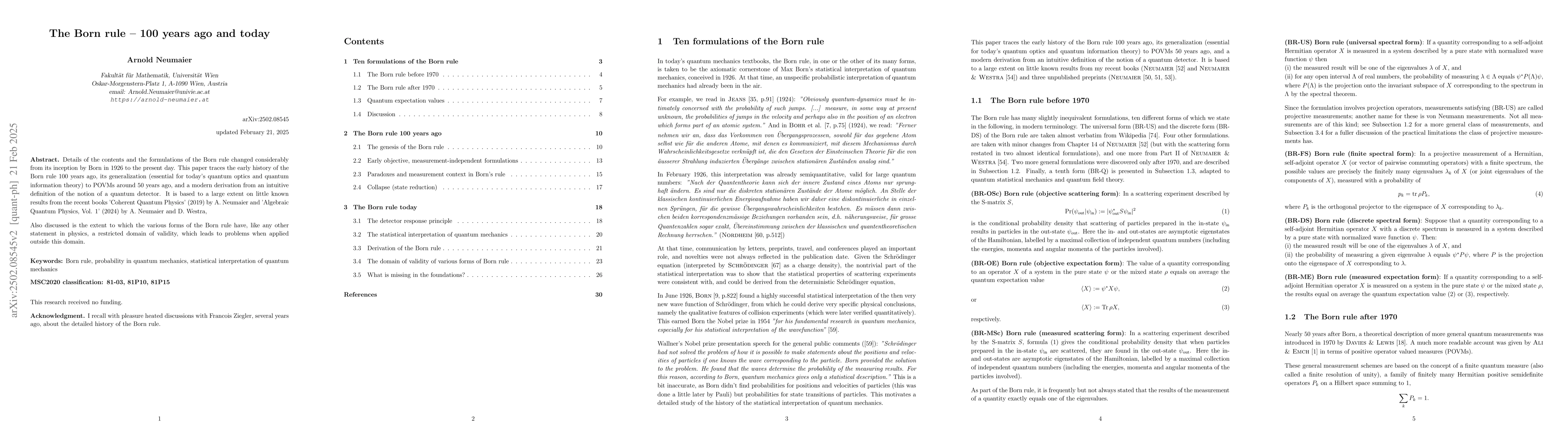 The paper provides a historical analysis of the Born rule, tracing its evolution from its inception by Born in 1926 to its generalization and modern derivations, referencing recent works by Neumaier and Westra.
