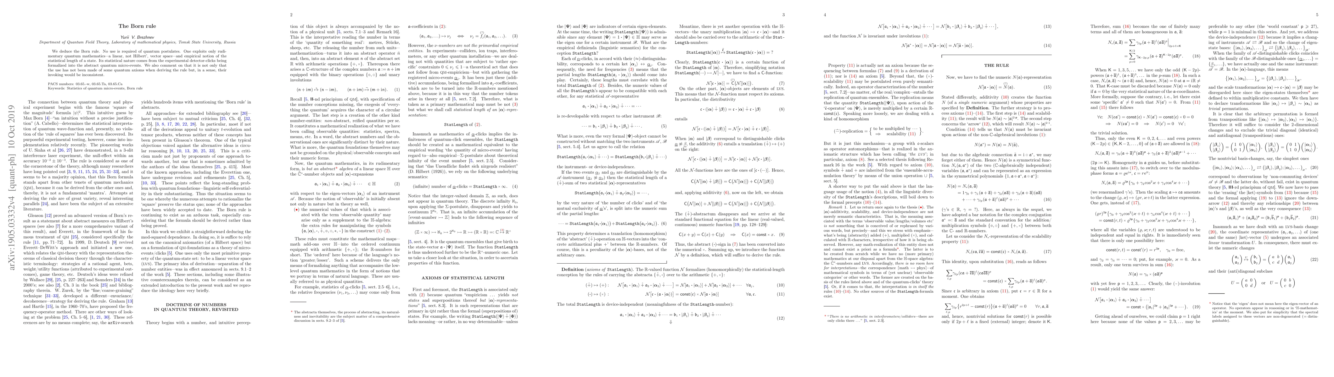 The paper derives the Born rule purely from rudimentary quantum mathematics and empirical statistical length, without relying on quantum postulates, demonstrating that invoking quantum axioms would be inconsistent. The statistical nature is formalized through abstract quantum micro-events represented by detector-clicks.