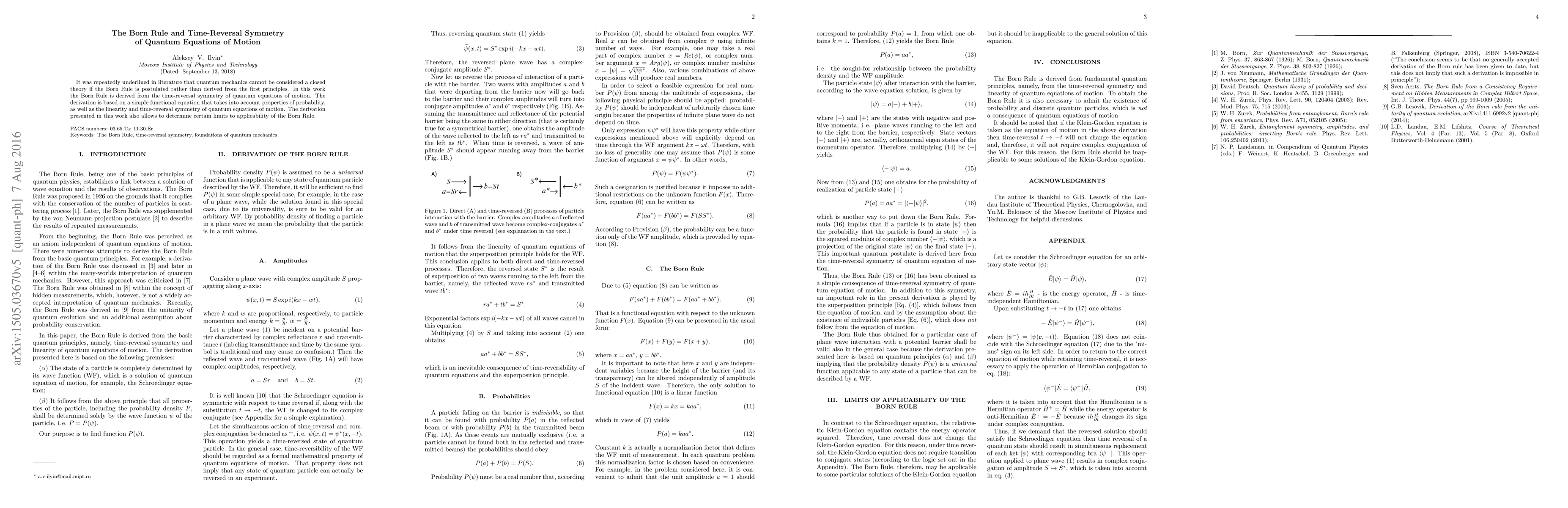 This paper derives the Born Rule from the time-reversal symmetry of quantum equations of motion using a functional equation, addressing the issue of its non-derivation from first principles and identifying limits of its applicability.