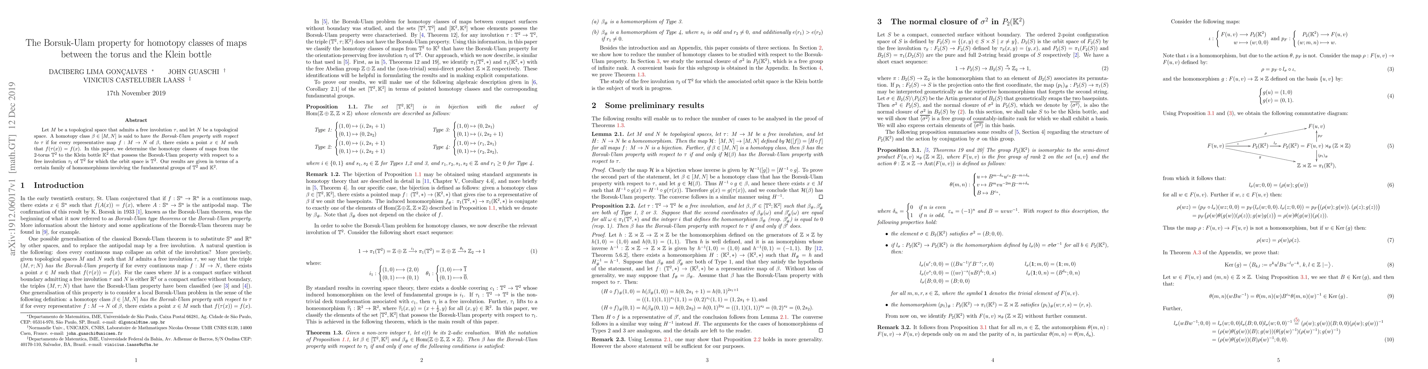 The paper investigates homotopy classes of maps between the 2-torus and the Klein bottle with respect to a free involution, determining which classes possess the Borsuk-Ulam property, and providing results in terms of fundamental group homomorphisms.
