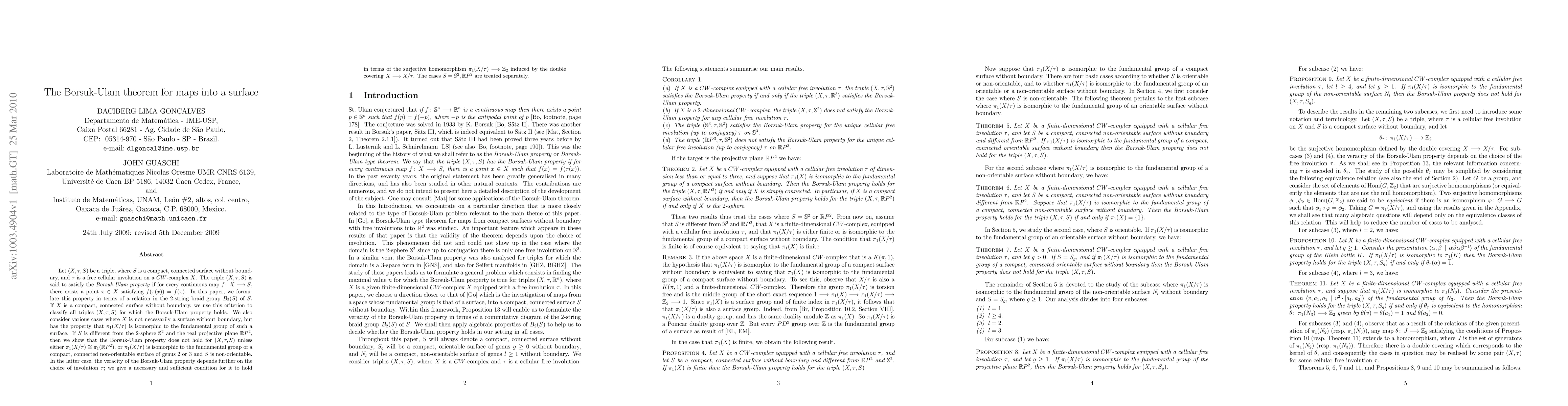 The paper introduces a criterion for the Borsuk-Ulam property using the 2-string braid group B_2(S), extending the classical Borsuk-Ulam theorem to surfaces with specified involutions and fundamental group properties.