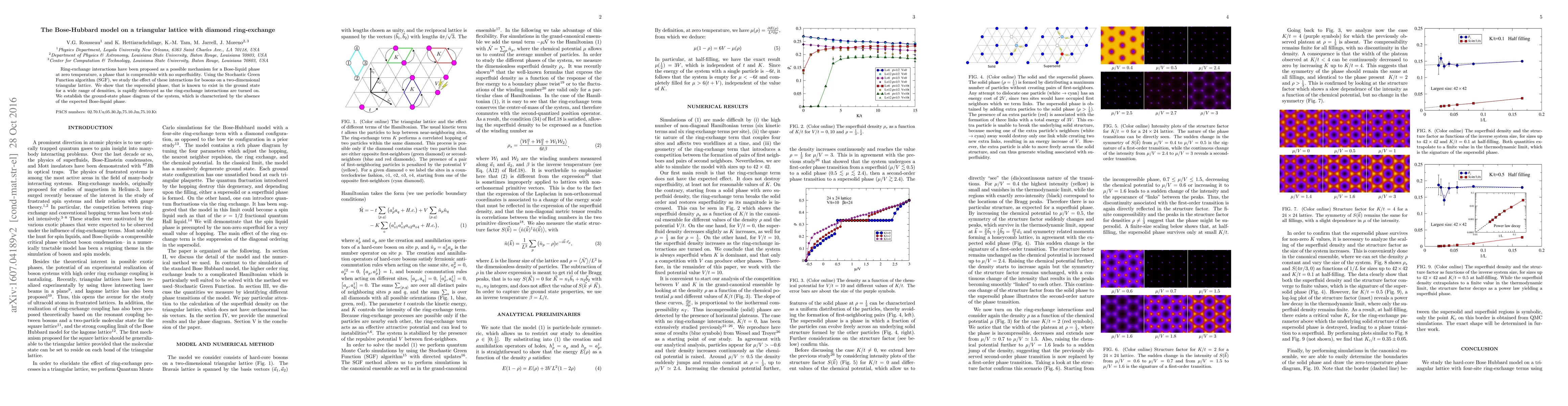 The Stochastic Green Function algorithm was used to simulate the Bose-Hubbard model on a triangular lattice with four-site ring exchange terms.
