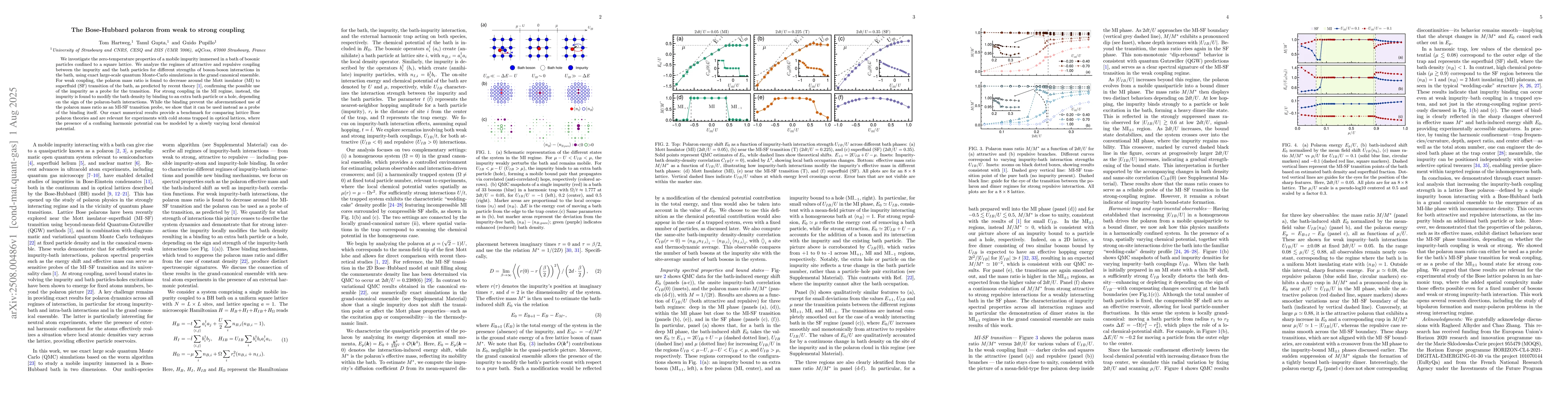 We investigate the zero-temperature properties of a mobile impurity immersed in a bath of bosonic particles confined to a square lattice. We analyze the regimes of attractive and repulsive coupling between the impurity and the bath particles for different strengths of boson-boson interactions in the bath, using exact large-scale quantum Monte-Carlo simulations in the grand canonical ensemble. For weak coupling, the polaron mass ratio is found to decrease around the Mott insulator (MI) to superfluid (SF) transition of the bath, as predicted by recent theory, confirming the possible use of the impurity as a probe for the transition. For strong coupling in the MI regime, instead, the impurity is found to modify the bath density by binding to an extra bath particle or a hole, depending on the sign of the polaron-bath interactions. While the binding prevent the aforementioned use of the polaron mass ratio as an MI-SF transition probe, we show that it can be used instead as a probe of the binding itself. Our exact numerical results provide a benchmark for comparing lattice Bose polaron theories and are relevant for experiments with cold atoms trapped in optical lattices, where the presence of a confining harmonic potential can be modeled by a slowly varying local chemical potential.