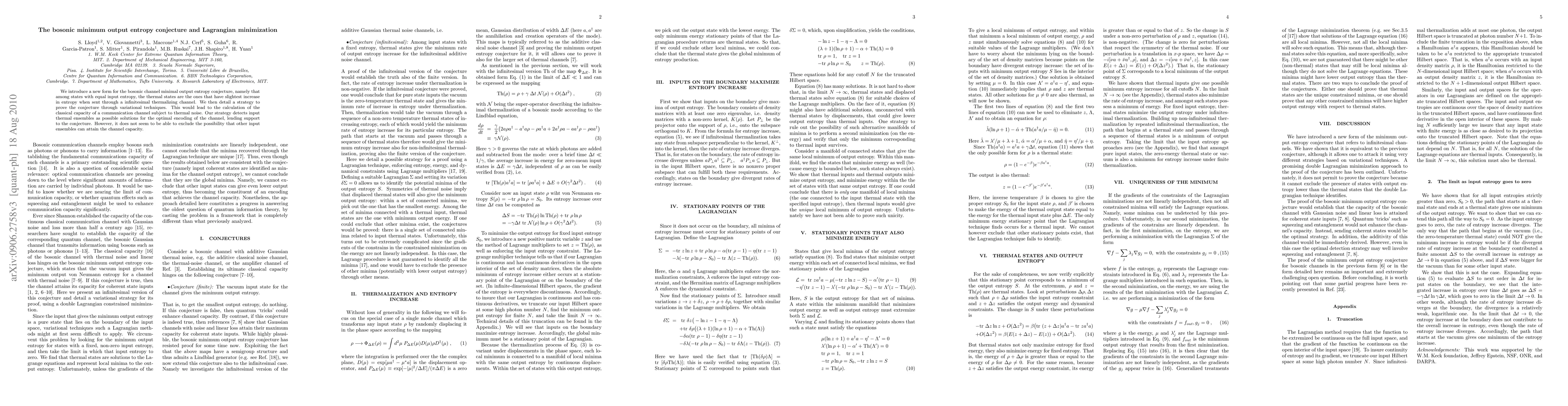 We introduce a new form for the bosonic channel minimal output entropy conjecture, namely that among states with equal input entropy, the thermal states are the ones that have slightest increase in entropy when sent through a infinitesimal thermalizing channel. We then detail a strategy to prove the conjecture through variational techniques. This would lead to the calculation of the classical capacity of a communication channel subject to thermal noise. Our strategy detects input thermal ensembles as possible solutions for the optimal encoding of the channel, lending support to the conjecture. However, it does not seem to be able to exclude the possibility that other input ensembles can attain the channel capacity.
