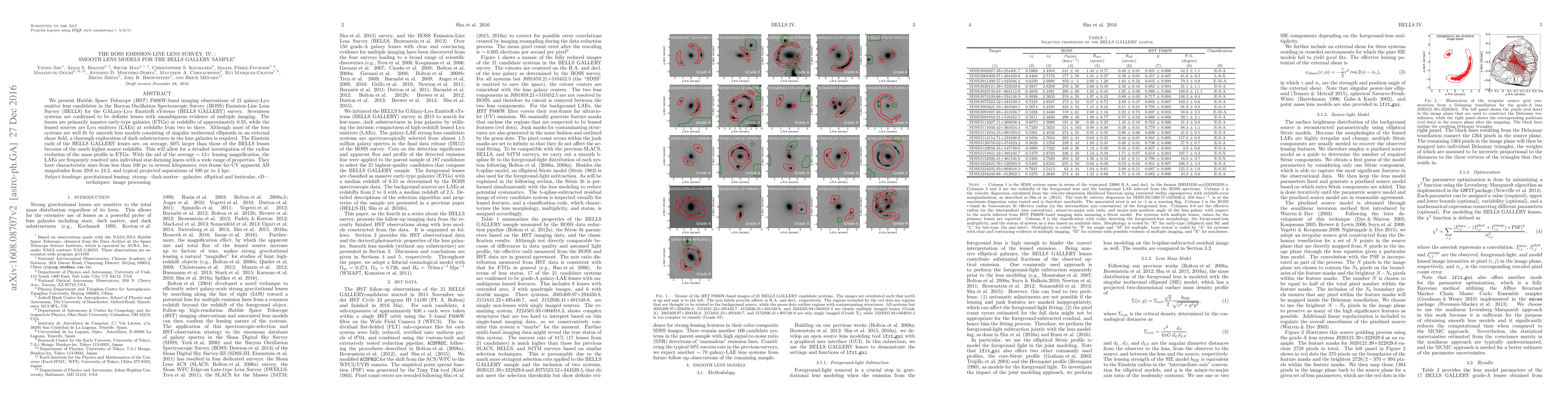 We present \textsl{Hubble Space Telescope} (\textsl{HST}) F606W-band imaging observations of 21 galaxy-Ly$\alpha$ emitter lens candidates in the Baryon Oscillation Spectroscopic Survey (BOSS) Emission-Line Lens Survey (BELLS) for GALaxy-Ly$\alpha$ EmitteR sYstems (BELLS GALLERY) survey. 17 systems are confirmed to be definite lenses with unambiguous evidence of multiple imaging. The lenses are primarily massive early-type galaxies (ETGs) at redshifts of approximately $0.55$, while the lensed sources are Ly$\alpha$ emitters (LAEs) at redshifts from 2 to 3. Although the \textsl{HST} imaging data are well fit by smooth lens models consisting of singular isothermal ellipsoids in an external shear field, a thorough exploration of dark substructures in the lens galaxies is required. The Einstein radii of the BELLS GALLERY lenses are on average $60\%$ larger than those of the BELLS lenses because of the much higher source redshifts which will allow a detailed investigation of the radius evolution of the mass profile in ETGs. With the aid of the average $\sim 13 \times$ lensing magnification, the LAEs are resolved to comprise individual star-forming knots of a wide range of properties with characteristic sizes from less than 100 pc to several kpc, rest-frame far UV apparent AB magnitudes from 29.6 to 24.2, and typical projected separations of 500 pc to 2 kpc.