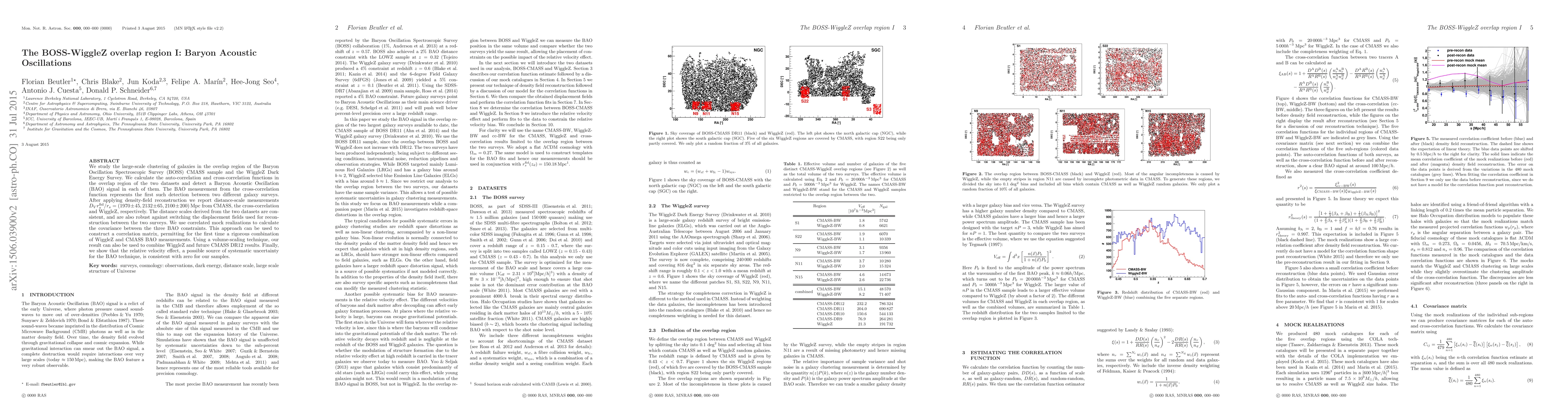 This paper investigates the large-scale galaxy clustering in the overlap region of the BOSS CMASS and WiggleZ surveys, detecting a Baryon Acoustic Oscillation (BAO) signal in both datasets. The cross-correlation BAO measurement between the two surveys represents the first of its kind, yielding consistent distance-scale measurements.