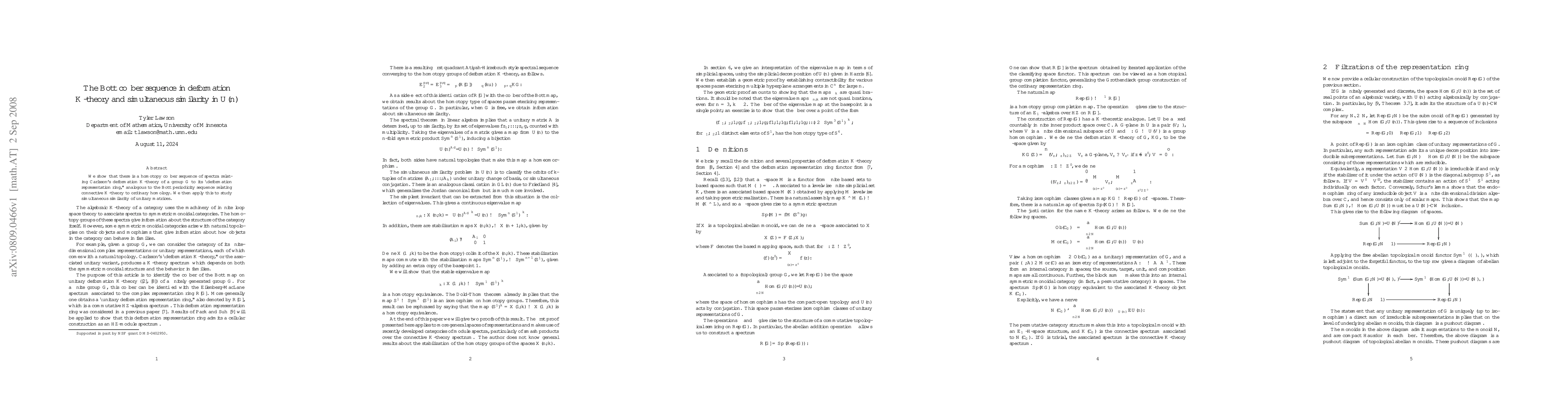 We show that there is a homotopy cofiber sequence of spectra relating Carlsson's deformation K-theory of a group G to its "deformation representation ring," analogous to the Bott periodicity sequence relating connective K-theory to ordinary homology. We then apply this to study simultaneous similarity of unitary matrices.
