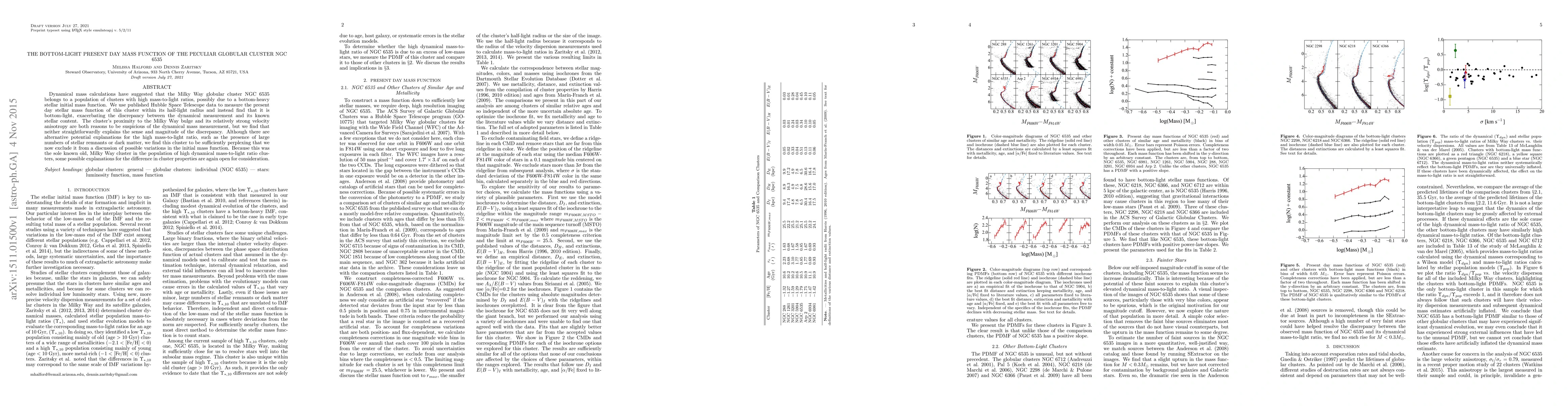 This paper investigates the mass function of the globular cluster NGC 6535, finding a bottom-light stellar mass function contrary to dynamical predictions, which suggests a high mass-to-light ratio. The discrepancy remains unexplained, complicating discussions on the initial mass function.