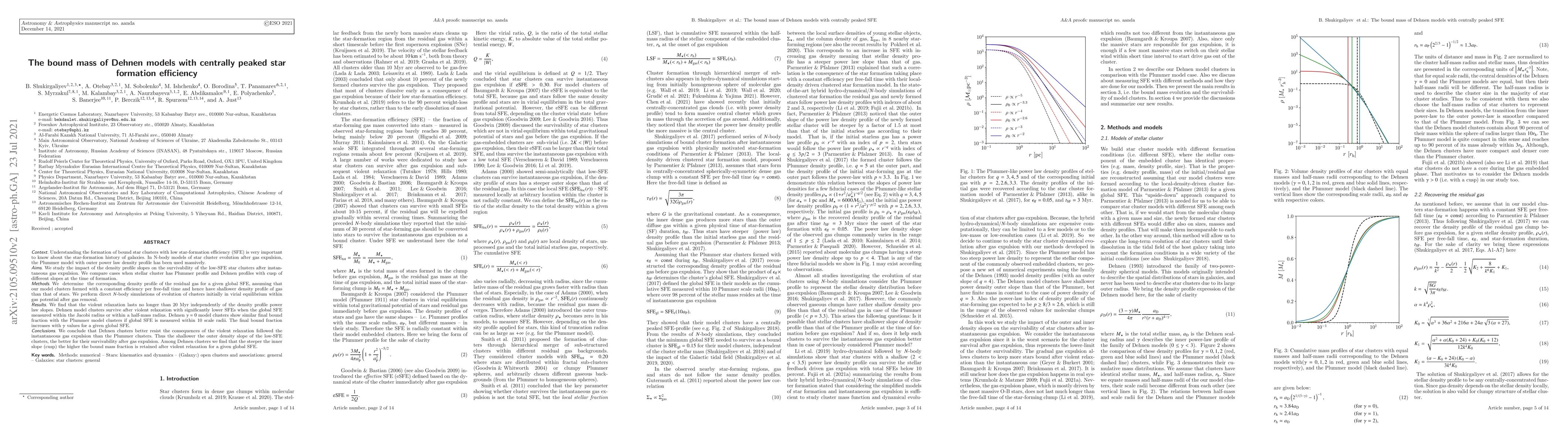 Understanding the formation of star clusters with low star-formation efficiency (SFE) is very important to know about the star-formation history. In N-body models of star cluster evolution after gas expulsion, the Plummer model with outer power law density profile has been used massively. We study the impact of the density profile slopes on the survivability of the low-SFE star clusters after instantaneous gas expulsion. We compare cases when stellar cluster has Plummer profile and Dehnen profiles with cusp of different slopes at the time of formation. We determine the corresponding density profile of the residual gas for a given global SFE, assuming that our model clusters formed with a constant efficiency per free-fall time and hence have shallower density profile of gas than that of stars. We perform direct $N$-body simulations of evolution of clusters initially in virial equilibrium within gas potential after gas removal. We find that the violent relaxation lasts no longer than 20~Myr independently of the density profile power law slopes. Dehnen model clusters survive after violent relaxation with significantly lower SFEs when the global SFE measured within the Jacobi radius or within a half-mass radius. Dehnen $\gamma=0$ model clusters show similar final bound fraction with the Plummer model clusters if global SFE is measured within 10 scale radii. The final bound fraction increases with $\gamma$ values for a given global SFE. We conclude that Dehnen clusters better resist the consequences of the violent relaxation followed the instantaneous gas expulsion than the Plummer clusters. Thus the shallower the outer density slope of the low-SFE clusters, the better for their survivability after gas expulsion. Among Dehnen clusters we find that the steeper the inner slope (cusp) the higher the bound mass fraction is retained after violent relaxation for a given global SFE.
