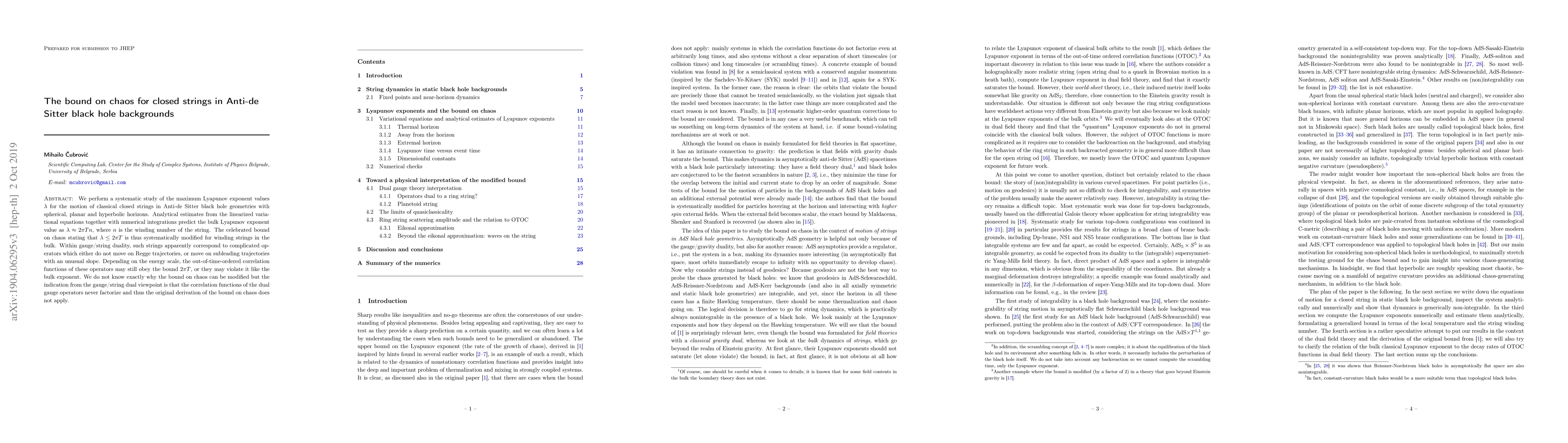 We perform a systematic study of the maximum Lyapunov exponent values $\lambda$ for the motion of classical closed strings in Anti-de Sitter black hole geometries with spherical, planar and hyperbolic horizons. Analytical estimates from the linearized variational equations together with numerical integrations predict the bulk Lyapunov exponent value as $\lambda\approx 2\pi Tn$, where $n$ is the winding number of the string. The celebrated bound on chaos stating that $\lambda\leq 2\pi T$ is thus systematically modified for winding strings in the bulk. Within gauge/string duality, such strings apparently correspond to complicated operators which either do not move on Regge trajectories, or move on subleading trajectories with an unusual slope. Depending on the energy scale, the out-of-time-ordered correlation functions of these operators may still obey the bound $2\pi T$, or they may violate it like the bulk exponent. We do not know exactly why the bound on chaos can be modified but the indication from the gauge/string dual viewpoint is that the correlation functions of the dual gauge operators never factorize and thus the original derivation of the bound on chaos does not apply.