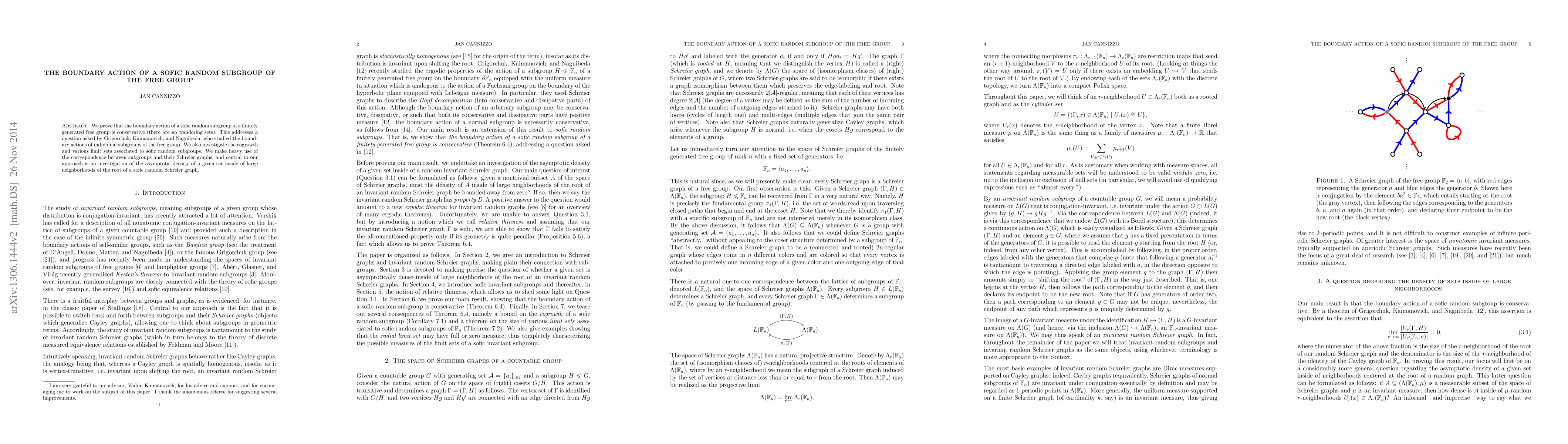 We prove that the boundary action of a sofic random subgroup of a finitely generated free group is conservative. This addresses a question asked by Grigorchuk, Kaimanovich, and Nagnibeda, who studied the boundary actions of individual subgroups of the free group. Following their work, we also investigate the cogrowth and various limit sets associated to sofic random subgroups. We make heavy use of the correspondence between subgroups and their Schreier graphs, and central to our approach is an investigation of the asymptotic density of a given set inside of large neighborhoods of the root of a sofic random Schreier graph.