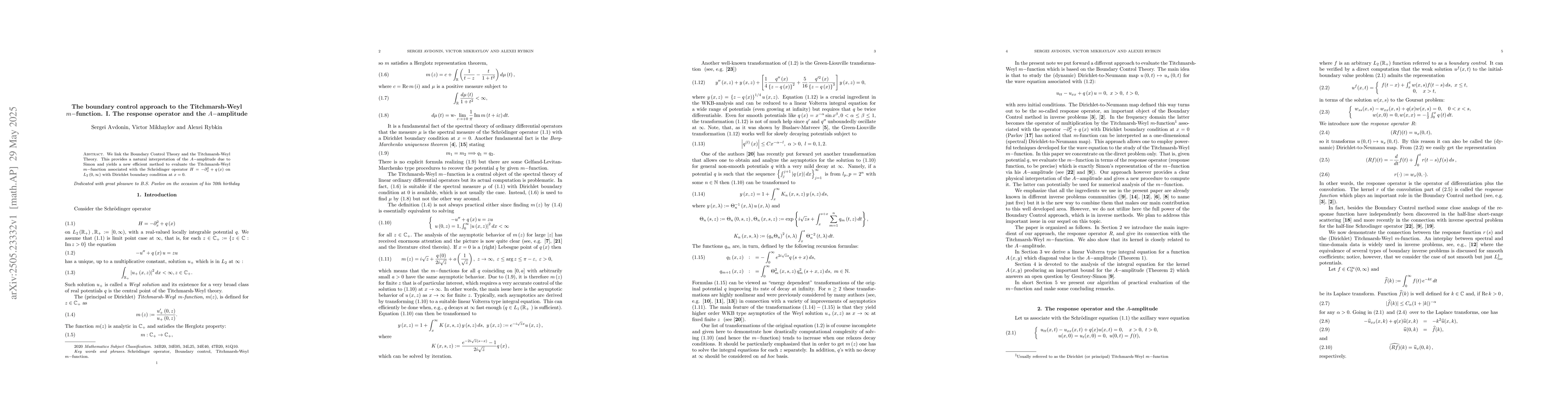 The paper introduces a boundary control approach to evaluate the Titchmarsh-Weyl m-function, leading to a new integral representation and an integral equation for the A-amplitude.