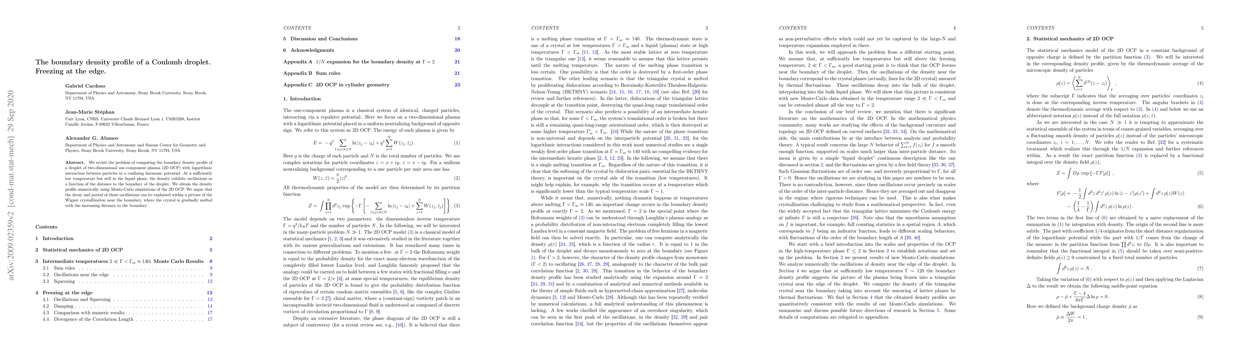 Researchers studied the boundary density profile of a 2D liquid droplet with logarithmic interactions, finding oscillations that can be explained by the gradual melting of Wigner crystallization near the boundary.