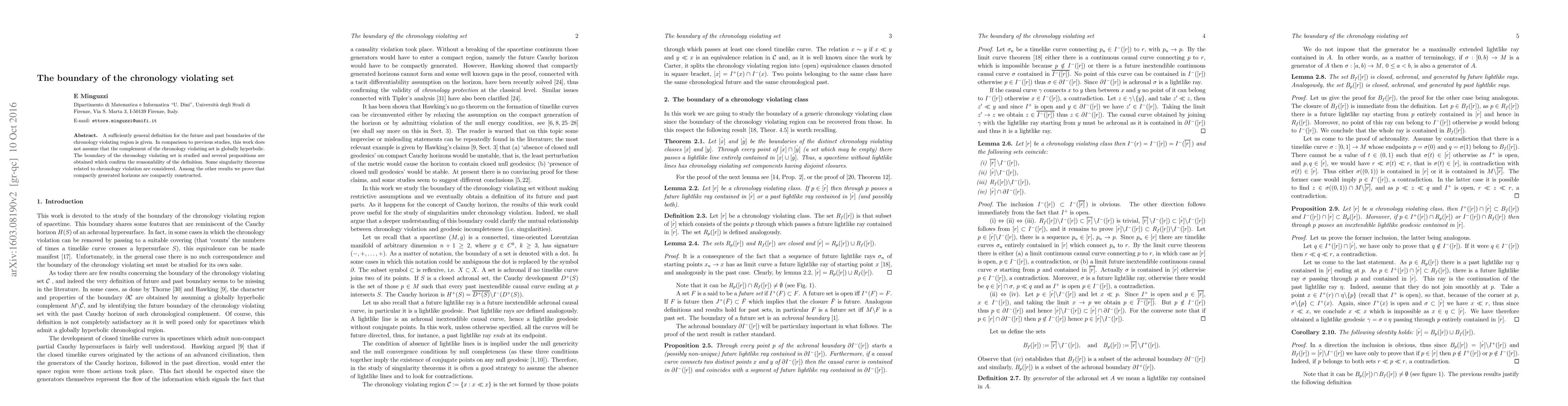 A sufficiently general definition for the future and past boundaries of the chronology violating region is given. In comparison to previous studies, this work does not assume that the complement of the chronology violating set is globally hyperbolic. The boundary of the chronology violating set is studied and several propositions are obtained which confirm the reasonability of the definition. Some singularity theorems related to chronology violation are considered. Among the other results we prove that compactly generated horizons are compactly constructed.