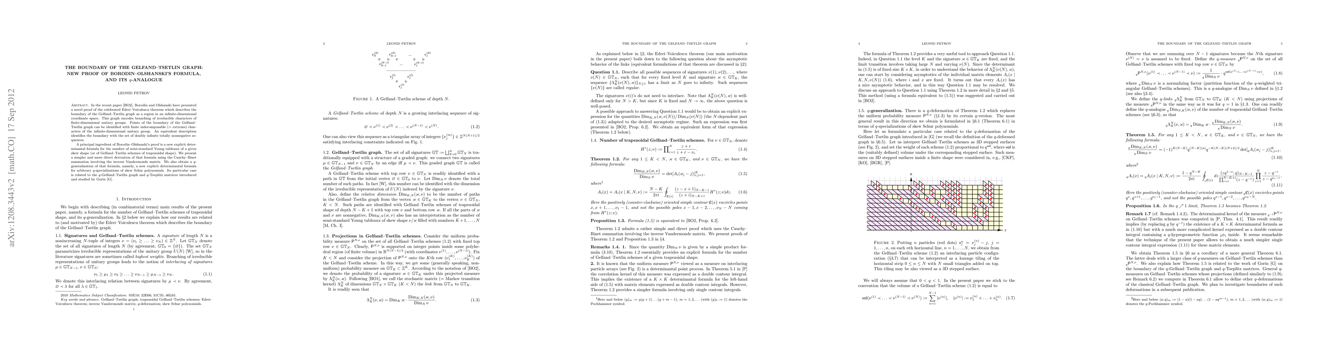 In the recent paper [arXiv:1109.1412], Borodin and Olshanski have presented a novel proof of the celebrated Edrei-Voiculescu theorem which describes the boundary of the Gelfand-Tsetlin graph as a region in an infinite-dimensional coordinate space. This graph encodes branching of irreducible characters of finite-dimensional unitary groups. Points of the boundary of the Gelfand-Tsetlin graph can be identified with finite indecomposable (= extreme) characters of the infinite-dimensional unitary group. An equivalent description identifies the boundary with the set of doubly infinite totally nonnegative sequences. A principal ingredient of Borodin-Olshanski's proof is a new explicit determinantal formula for the number of semi-standard Young tableaux of a given skew shape (or of Gelfand-Tsetlin schemes of trapezoidal shape). We present a simpler and more direct derivation of that formula using the Cauchy-Binet summation involving the inverse Vandermonde matrix. We also obtain a q-generalization of that formula, namely, a new explicit determinantal formula for arbitrary q-specializations of skew Schur polynomials. Its particular case is related to the q-Gelfand-Tsetlin graph and q-Toeplitz matrices introduced and studied by Gorin [arXiv:1011.1769].