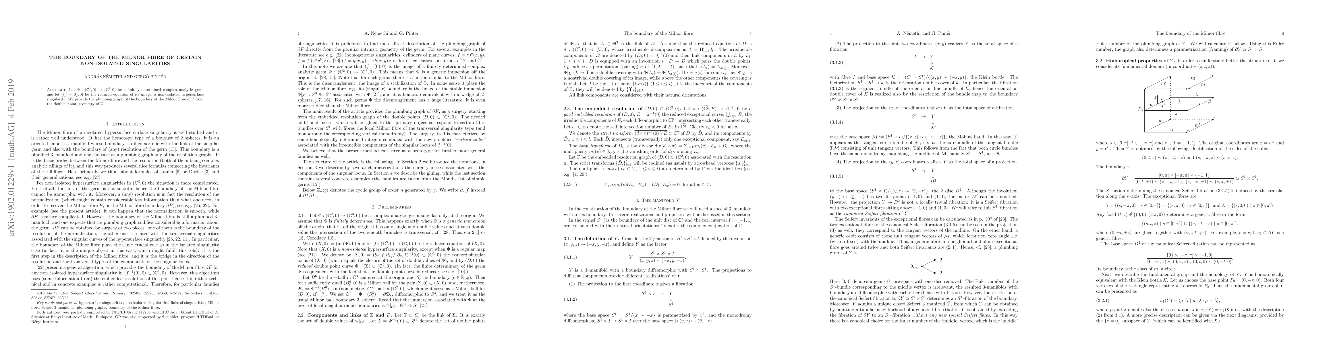 This paper investigates the boundary of the Milnor fibre for a non-isolated hypersurface singularity defined by a complex analytic germ $\Phi$. It presents the plumbing graph of the boundary derived from the double-point-geometry of $\Phi$.