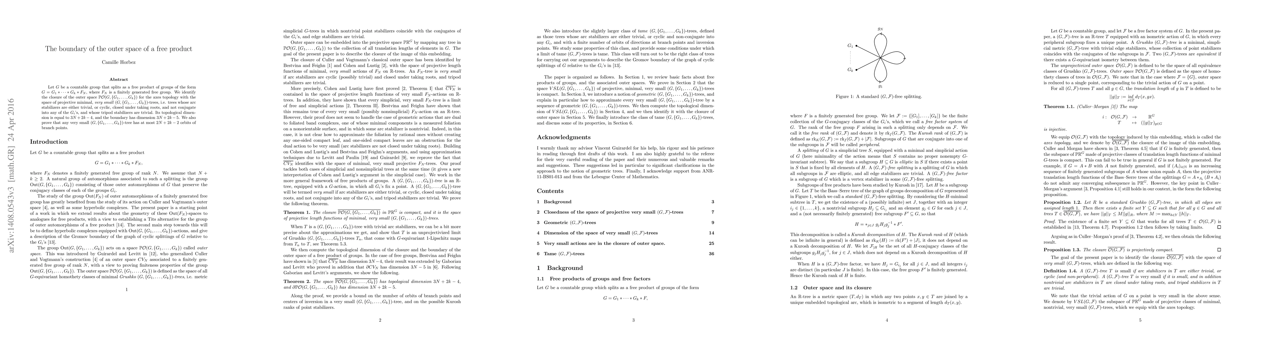 Let $G$ be a countable group that splits as a free product of groups of the form $G=G_1\ast\dots\ast G_k\ast F_N$, where $F_N$ is a finitely generated free group. We identify the closure of the outer space $P\mathcal{O}(G,\{G_1,\dots,G_k\})$ for the axes topology with the space of projective minimal, \emph{very small} $(G,\{G_1,\dots,G_k\})$-trees, i.e. trees whose arc stabilizers are either trivial, or cyclic, closed under taking roots, and not conjugate into any of the $G_i$'s, and whose tripod stabilizers are trivial. Its topological dimension is equal to $3N+2k-4$, and the boundary has dimension $3N+2k-5$. We also prove that any very small $(G,\{G_1,\dots,G_k\})$-tree has at most $2N+2k-2$ orbits of branch points.