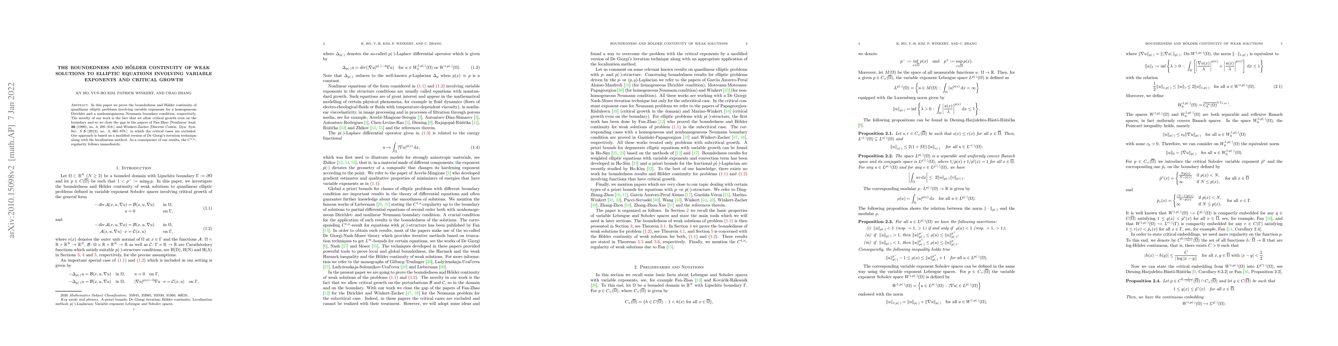 This paper proves the boundedness and H"older continuity of solutions to quasilinear elliptic equations with variable exponents, allowing for critical growth even on the boundary, closing a previous gap in research.