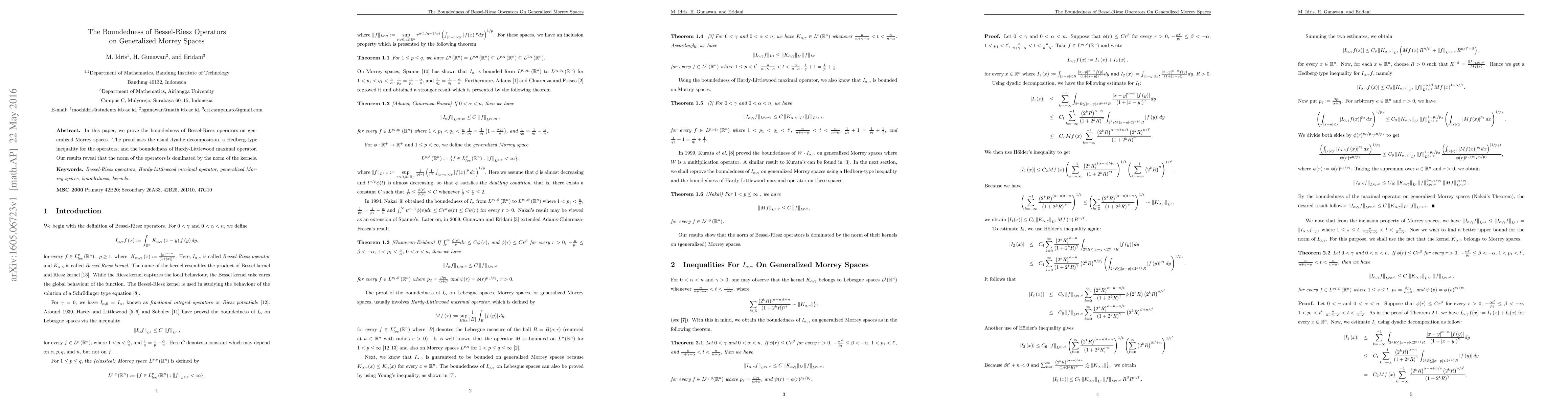 This paper demonstrates the boundedness of Bessel-Riesz operators on generalized Morrey spaces, utilizing dyadic decomposition, a Hedberg-type inequality, and the boundedness of the Hardy-Littlewood maximal operator, showing that the operator norms are controlled by kernel norms.