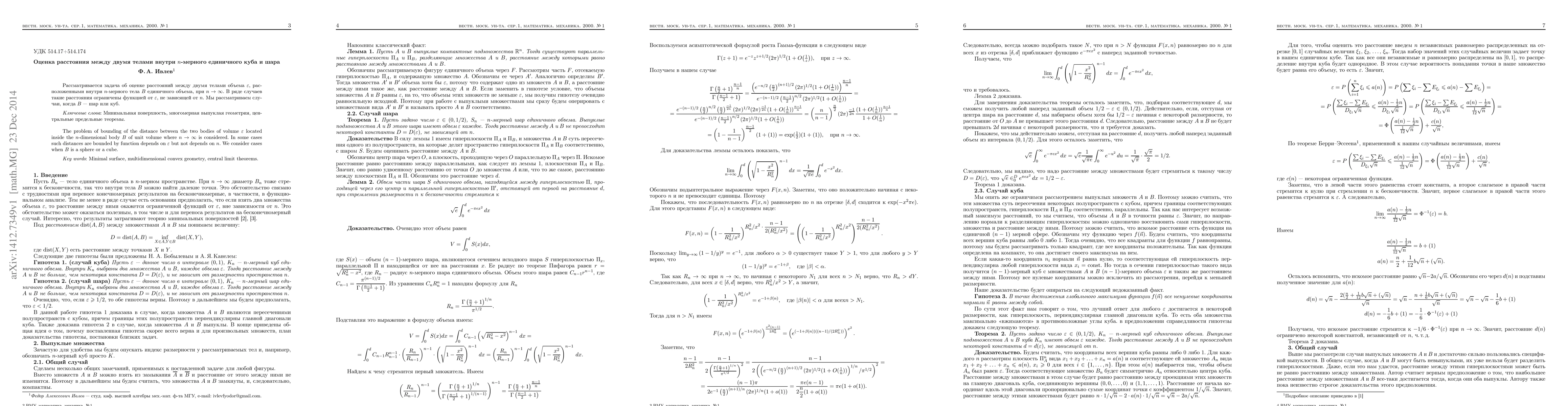 Summary: This paper investigates the boundness of the distance between two sets, each of volume $\varepsilon$, within an $n$-dimensional unit volume body $B$ (either a sphere or a cube), as $n$ approaches infinity. It finds that in some cases, the distance is bounded by a function dependent on $\varepsilon$ but not on $n$.