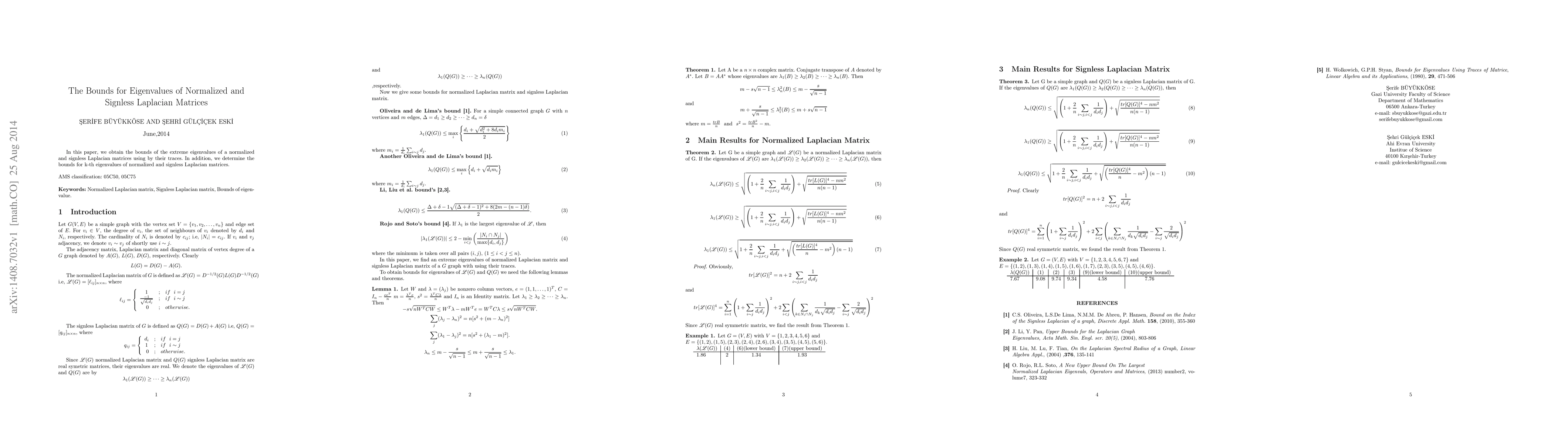 The paper derives bounds for extreme eigenvalues of normalized and signless Laplacian matrices using traces, leveraging lemmas and theorems, including Oliveira and de Lima's, Li et al.'s, Rojo and Soto's bounds, and a new theorem for matrix eigenvalues.