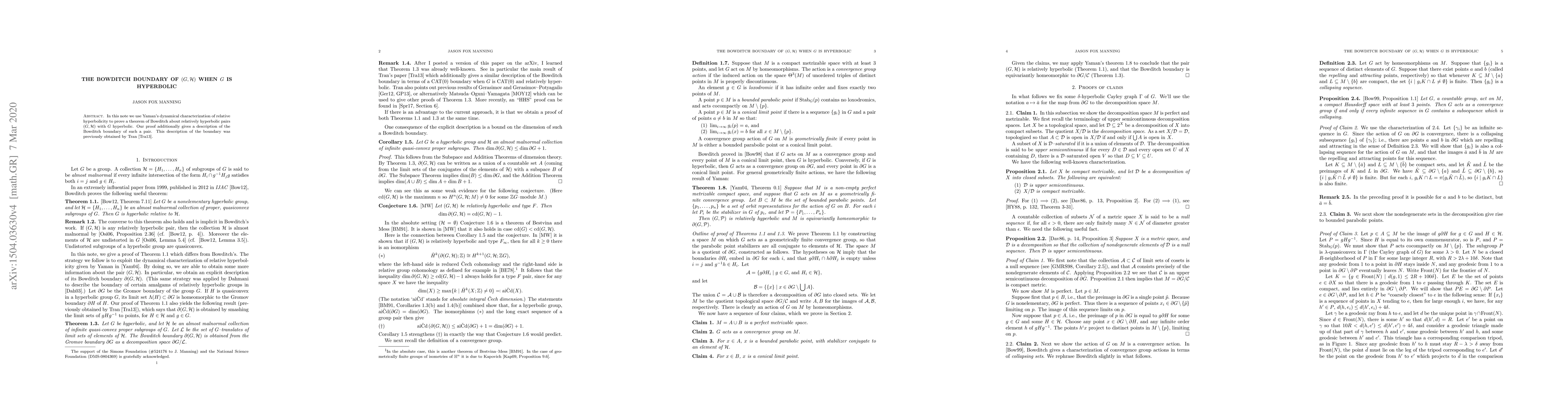 Researchers used Yaman's dynamical characterization of relative hyperbolicity to prove a theorem about Bowditch boundary in relatively hyperbolic pairs $(G,/mathcal{H})$ with $G$ hyperbolic, providing a description of the boundary.
