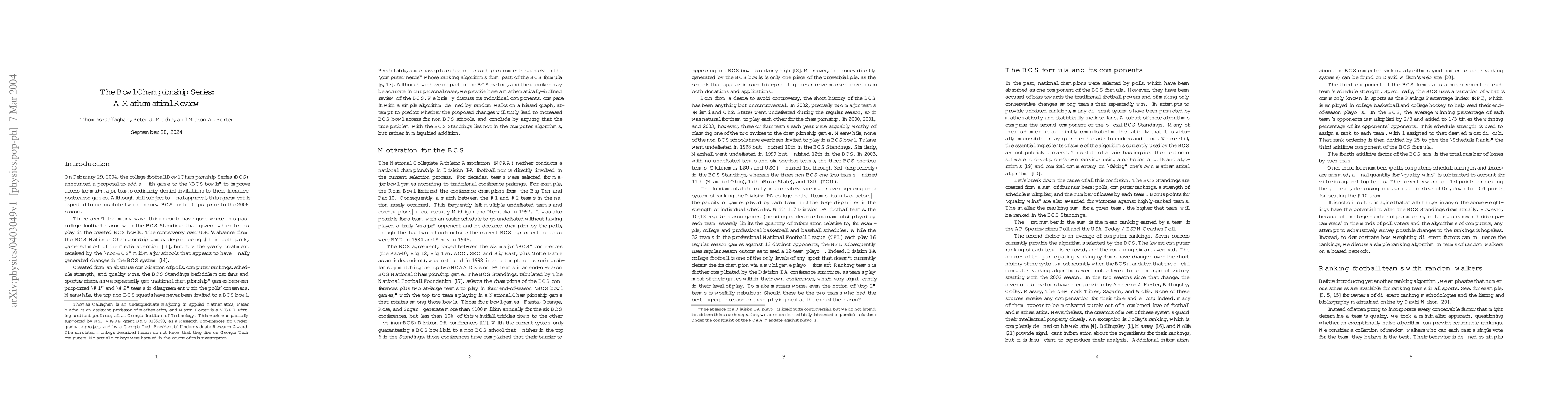 We discuss individual components of the college football Bowl Championship Series, compare with a simple algorithm defined by random walks on a biased graph, attempt to predict whether the proposed changes will truly lead to increased BCS bowl access for non-BCS schools, and conclude by arguing that the true problem with the BCS Standings lies not in the computer algorithms, but rather in misguided addition.