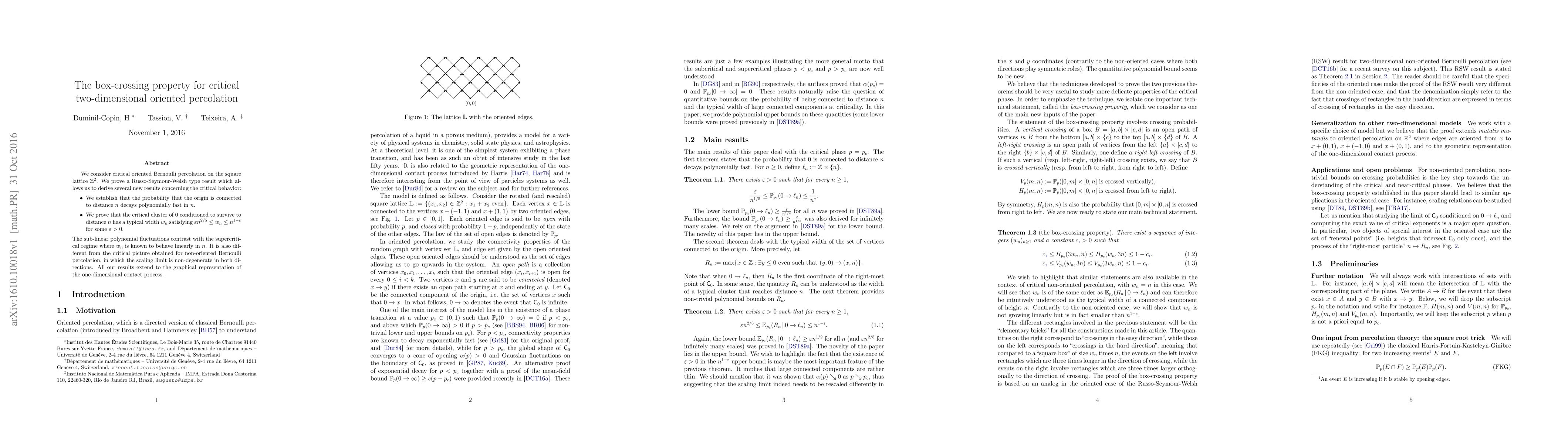 We consider critical oriented Bernoulli percolation on the square lattice $\mathbb{Z}^2$. We prove a Russo-Seymour-Welsh type result which allows us to derive several new results concerning the critical behavior: - We establish that the probability that the origin is connected to distance $n$ decays polynomially fast in $n$. - We prove that the critical cluster of the origin conditioned to survive to distance $n$ has a typical width $w_n$ satisfying $\epsilon n^{2/5} < w_n < n^{1-\epsilon}$ for some $\epsilon > 0$. The sub-linear polynomial fluctuations contrast with the supercritical regime where $w_n$ is known to behave linearly in $n$. It is also different from the critical picture obtained for non-oriented Bernoulli percolation, in which the scaling limit is non-degenerate in both directions. All our results extend to the graphical representation of the one-dimensional contact process.