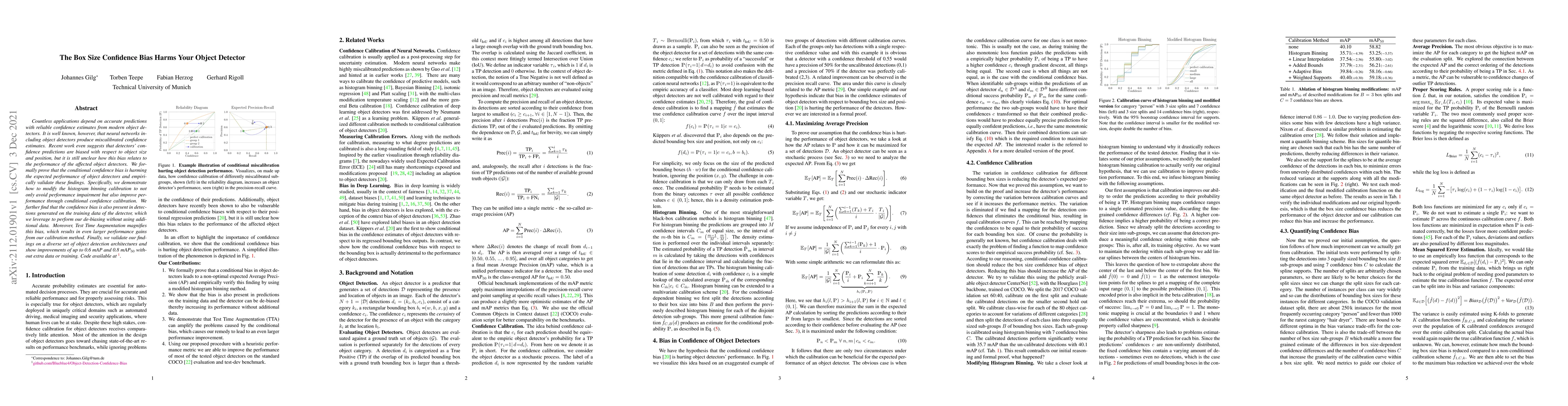 Object detectors produce biased confidence estimates based on object size and position, which harms performance; a new calibration method improves detection accuracy without additional data.