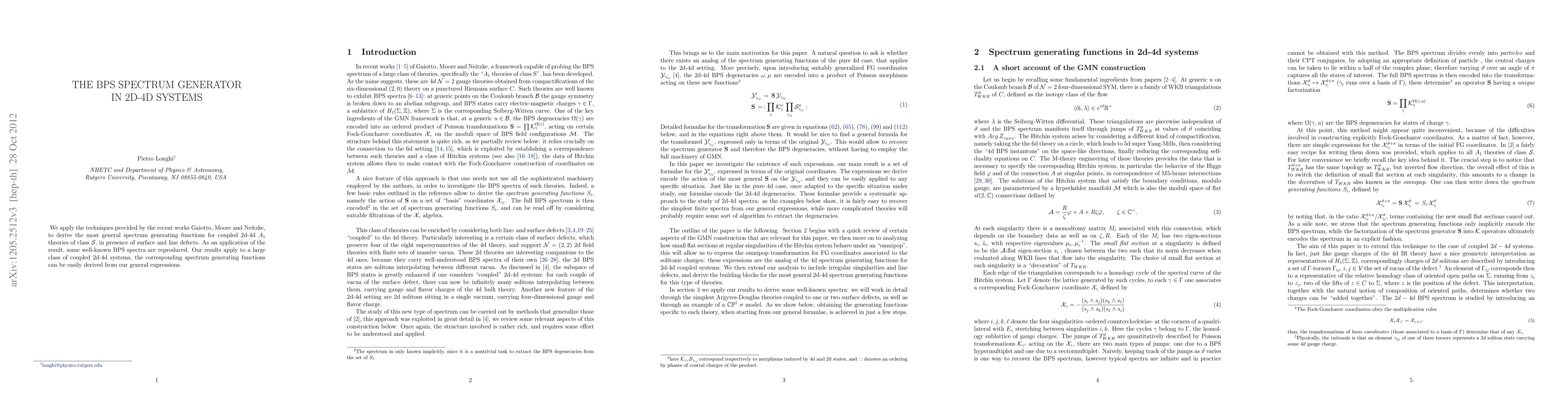 The paper derives the most general spectrum generating functions for coupled 2d-4d $A_1$ theories of class ${\cal S}$ using advanced techniques, and demonstrates their application in reproducing known BPS spectra, showing applicability to a wide range of coupled systems.