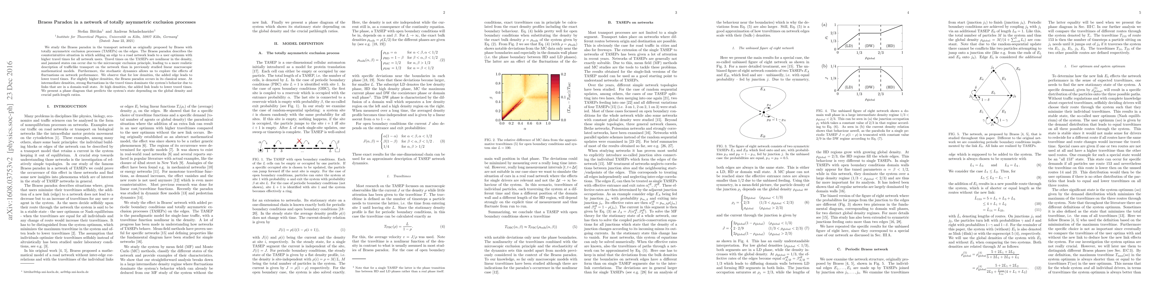 This paper investigates the Braess paradox in transport networks using totally asymmetric exclusion processes (TASEPs), revealing that adding a new edge can paradoxically increase travel times for all users at intermediate densities due to fluctuations and jammed states. A phase diagram is presented to predict network behavior based on density and path-length ratios.