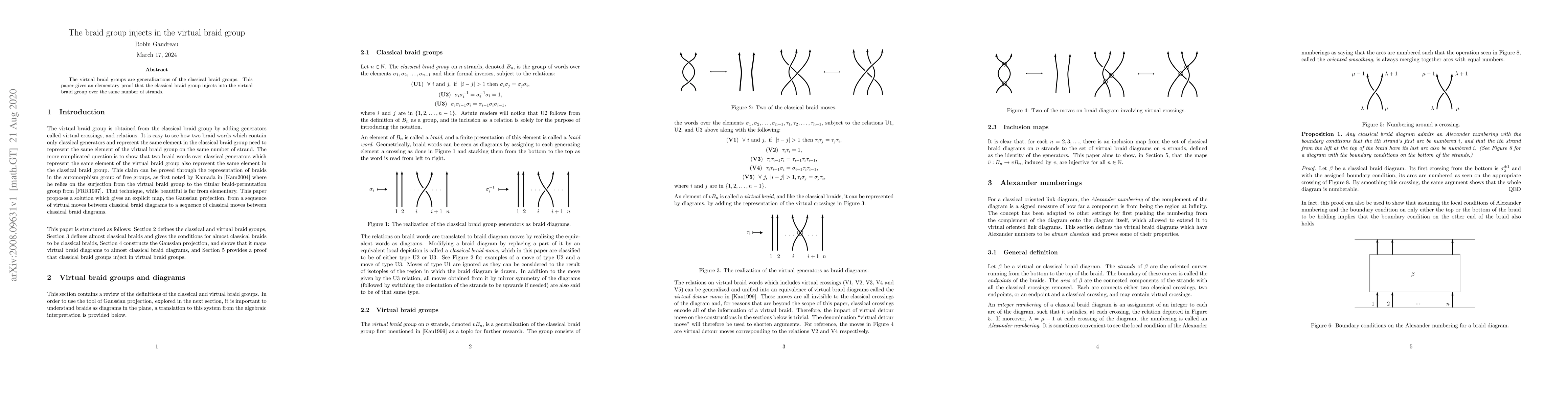 Summary: This paper provides a straightforward proof that the classical braid group embeds injectively into the virtual braid group with the same number of strands, showcasing the relationship between these two generalized braid groups.