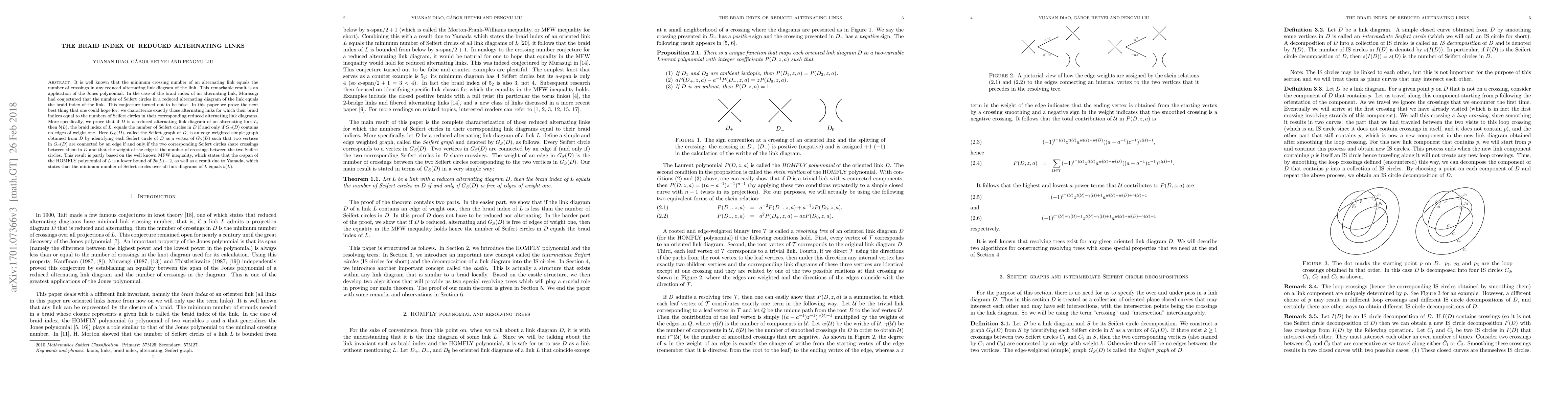 The paper introduces a novel characterization of alternating links based on the relationship between their braid index and Seifert circles, grounded in the MFW inequality and Yamada's result on the minimal number of Seifert circles.