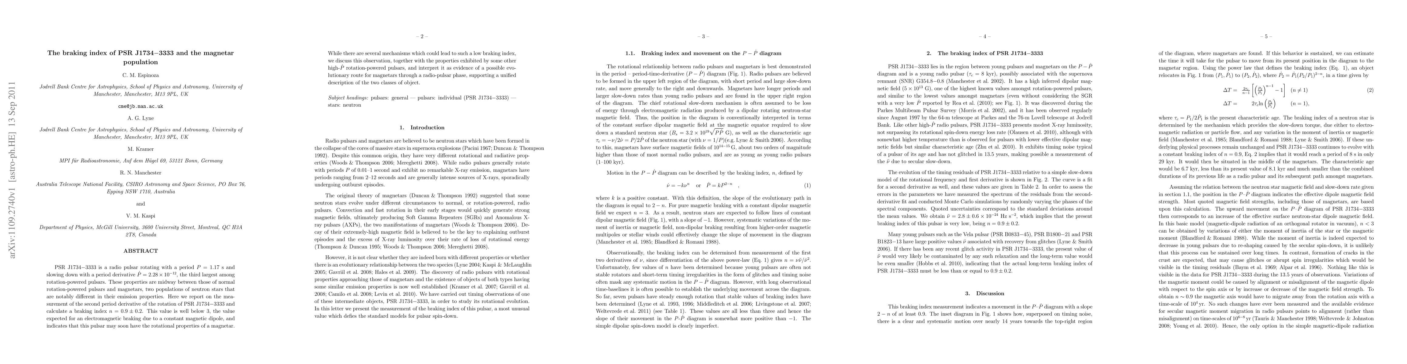 PSR J1734-3333 is a radio pulsar rotating with a period P=1.17 s and slowing down with a period derivative Pdot=2.28 x 10^{-12}, the third largest among rotation-powered pulsars. These properties are midway between those of normal rotation-powered pulsars and magnetars, two populations of neutron stars that are notably different in their emission properties. Here we report on the measurement of the second period derivative of the rotation of PSR J1734-3333 and calculate a braking index n=0.9 +- 0.2. This value is well below 3, the value expected for an electromagnetic braking due to a constant magnetic dipole, and indicates that this pulsar may soon have the rotational properties of a magnetar. While there are several mechanisms which could lead to such a low braking index, we discuss this observation, together with the properties exhibited by some other high-Pdot rotation-powered pulsars, and interpret it as evidence of a possible evolutionary route for magnetars through a radio-pulsar phase, supporting a unified description of the two classes of object.