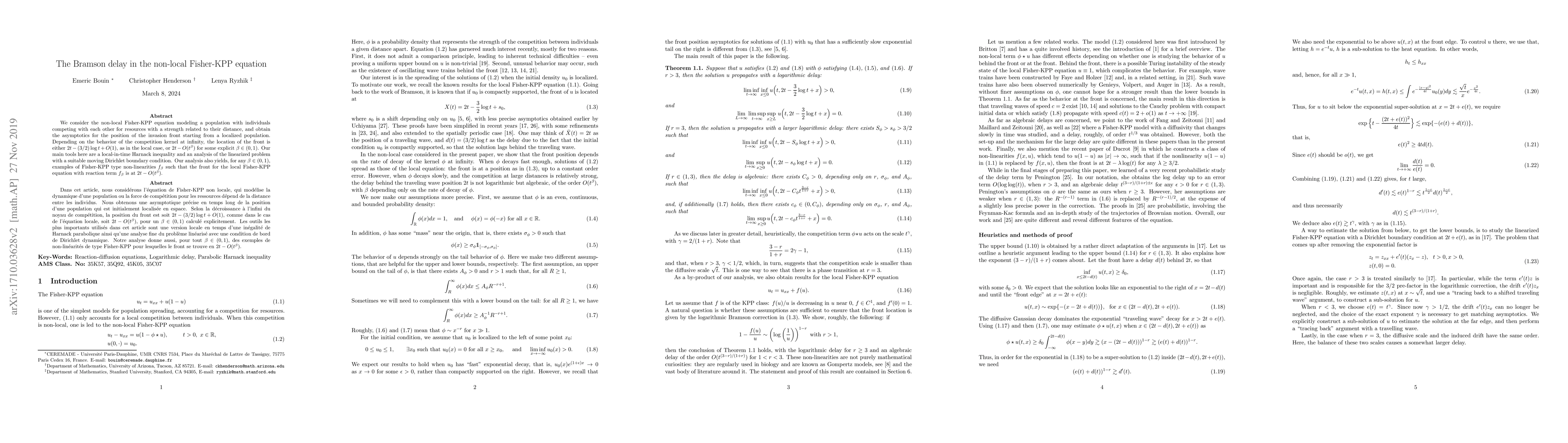The study investigates how the distance between individuals affects the invasion front of a population in the non-local Fisher-KPP equation, finding two possible scenarios for the front's location: one similar to the local case and another with a power-law dependence on time.