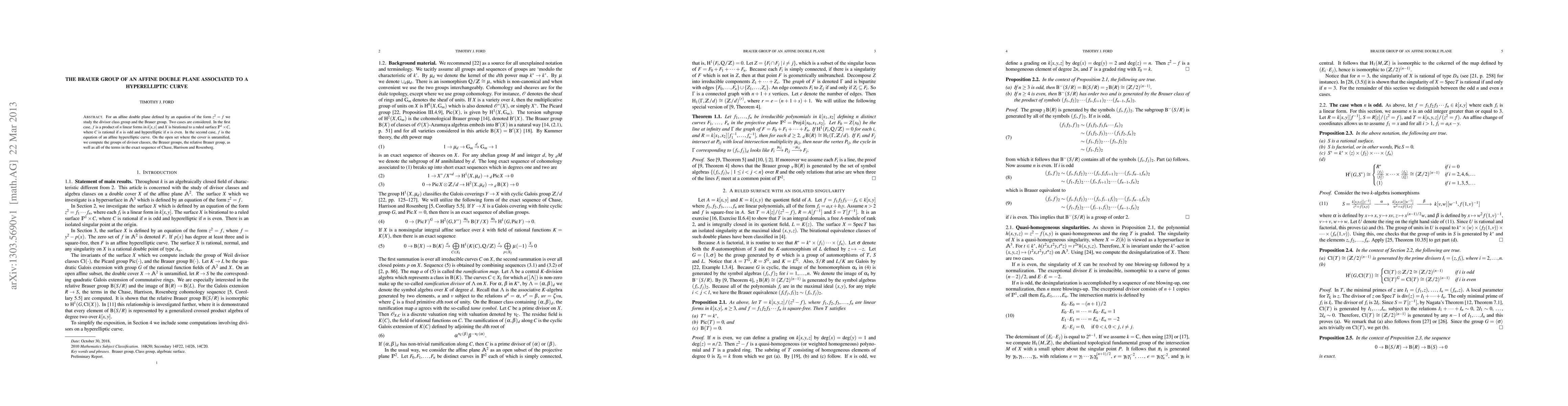 For an affine double plane defined by an equation of the form z^2 = f, we study the divisor class group and the Brauer group. Two cases are considered. In the first case, f is a product of n linear forms in k[x,y] and X is birational to a ruled surface P^1 x C, where C is rational if n is odd and hyperelliptic if n is even. In the second case, f is the equation of an affine hyperelliptic curve. On the open set where the cover is unramified, we compute the groups of divisor classes, the Brauer groups, the relative Brauer group, as well as all of the terms in he exact sequence of Chase, Harrison and Rosenberg.