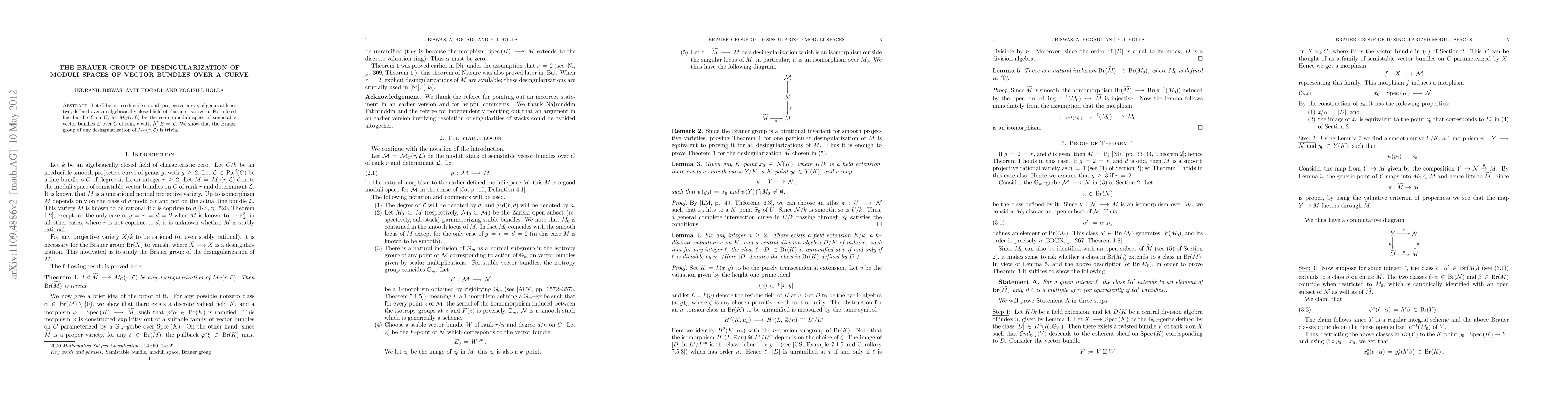 Summary: The research demonstrates that the Brauer group of any desingularized moduli space of semistable vector bundles over a smooth projective curve of genus at least two is trivial. This finding holds in the context of an algebraically closed field of characteristic zero.