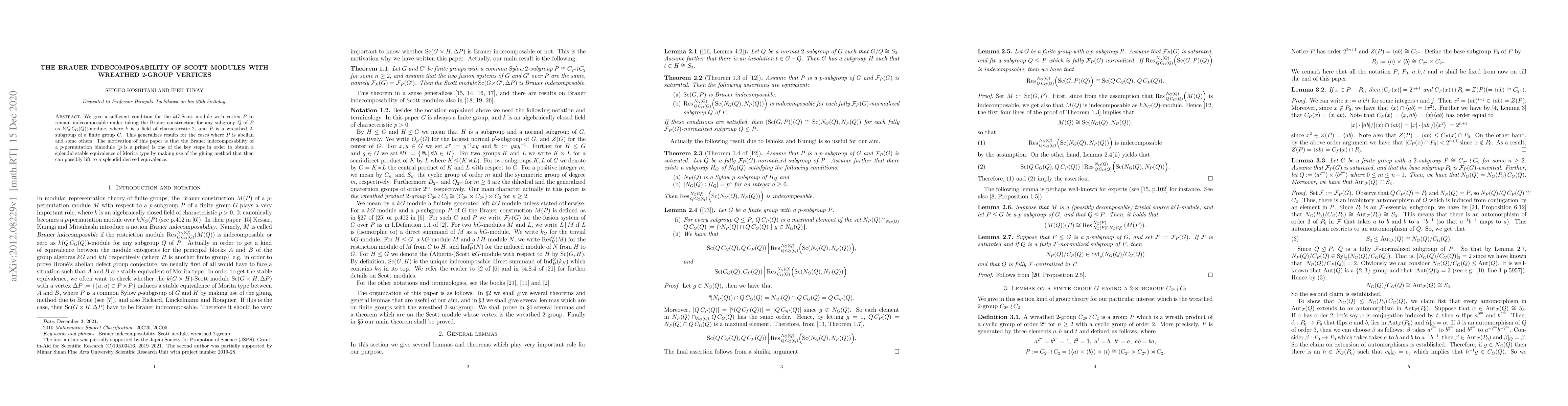 This research paper provides a sufficient condition for the indecomposability of Scott modules with wreathed 2-group vertices under the Brauer construction, generalizing previous results to this specific case.