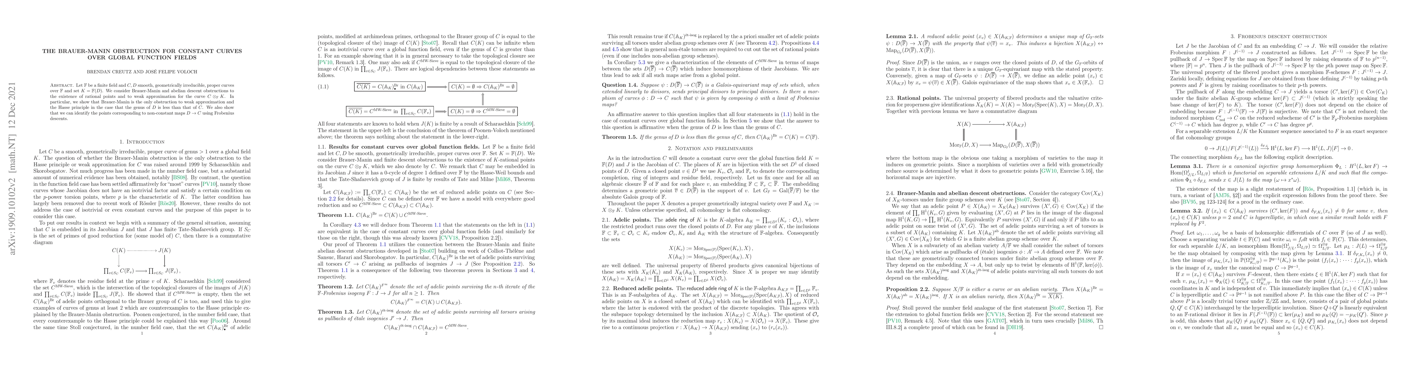 This paper examines Brauer-Manin and abelian descent obstructions for constant curves over global function fields, finding that Brauer-Manin is the sole obstruction to weak approximation when the genus of $D$ is lower than that of $C$. It also shows how to identify points corresponding to non-constant maps using Frobenius descents.